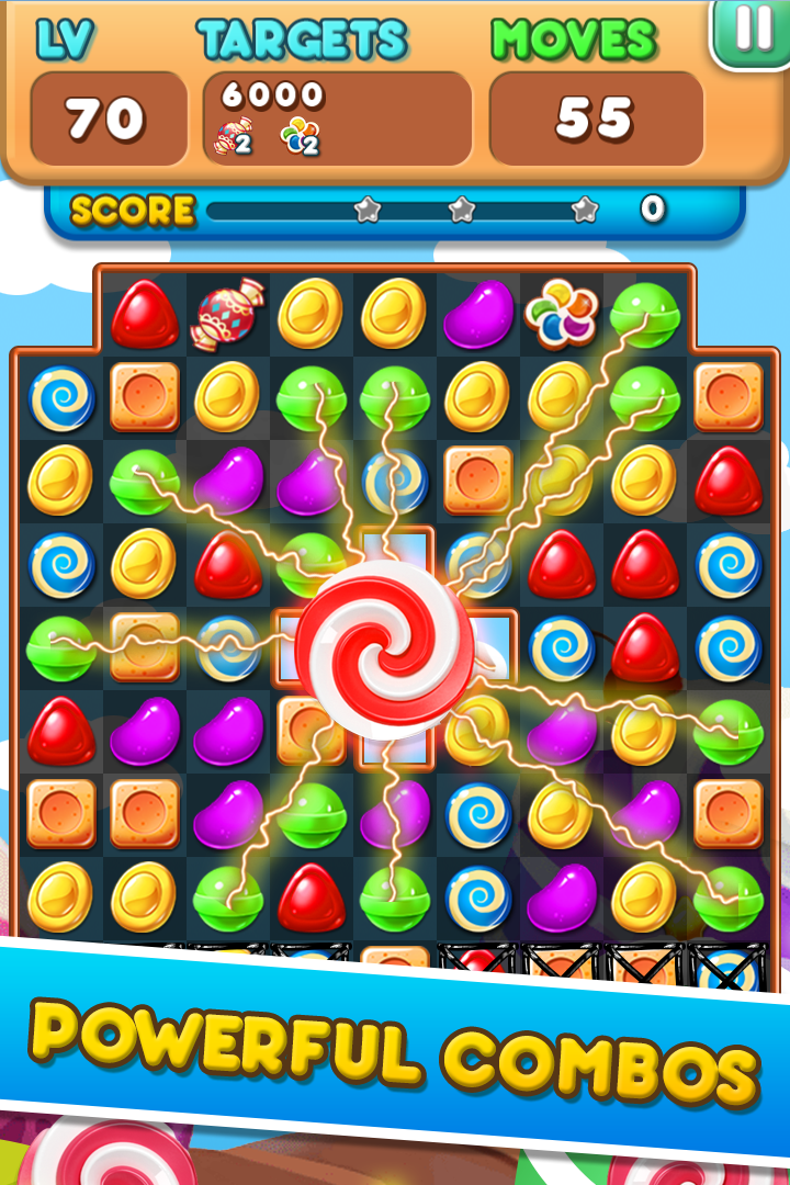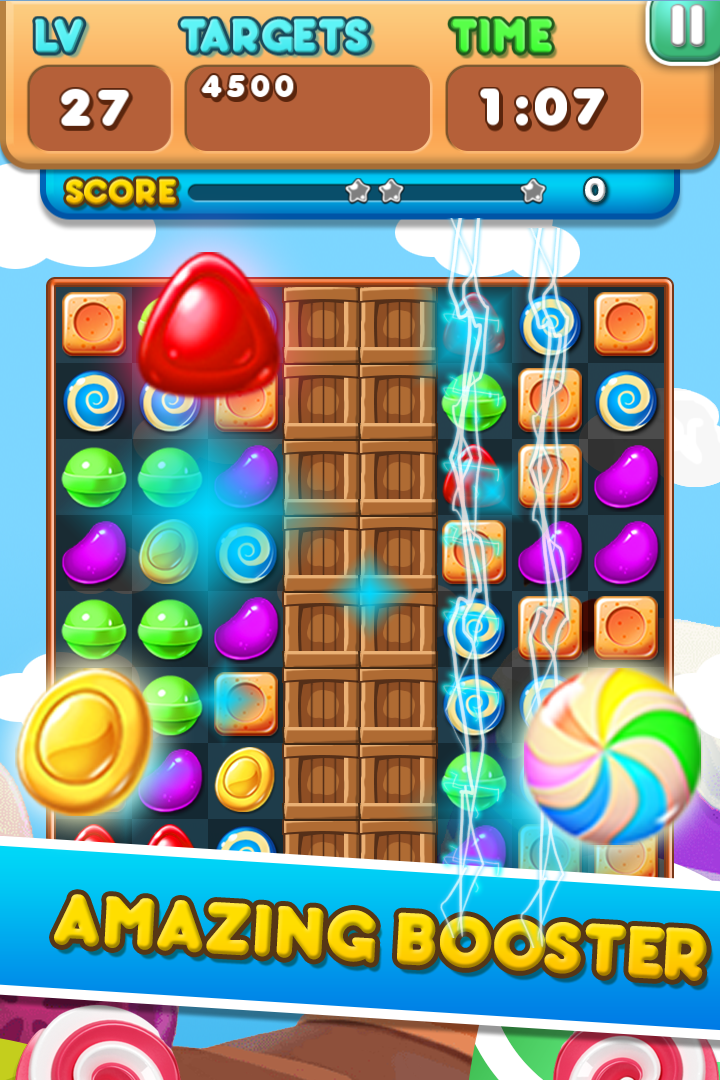 Amazing and colorful great new match 3 puzzle game Candy Sweet Frenzy