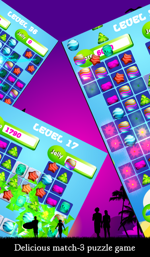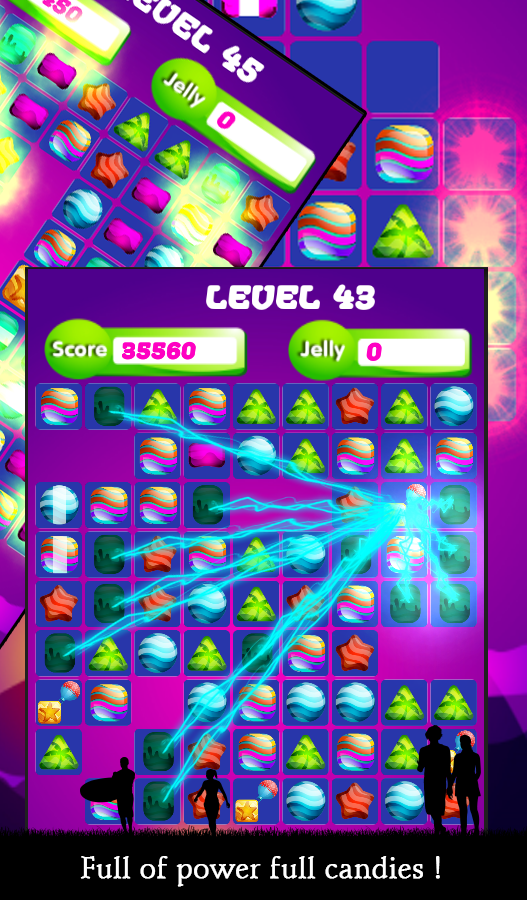 - Match 3 jewels or more same candy to make them boom, crush them! Reach the target score or collect candy to move to the next level.