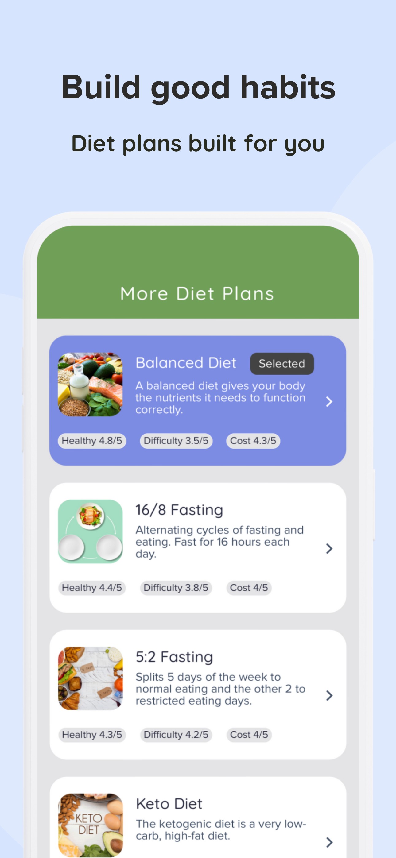 • Comprehensive Food Tracking: Explore advanced features like weekly meal plans and personalized diet suggestions to fit your lifestyle. Whether you're focused on an intuitive eating approach or following a structured macro-based diet plan, CapyDiet has you covered.