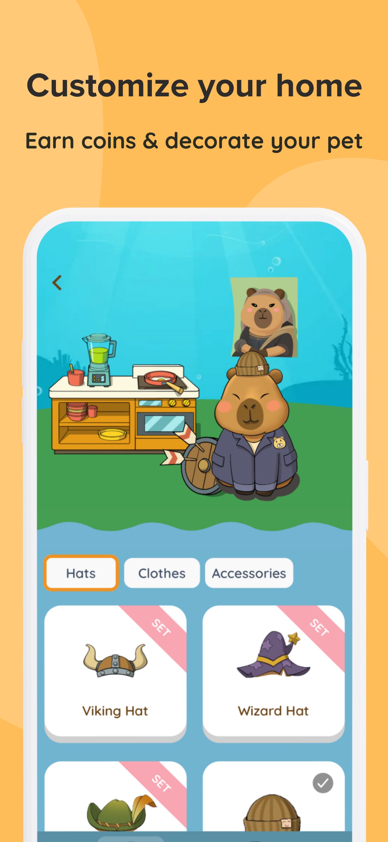 • Hit your goals with your Capybara friends: Invite and play together in Capy Town with your fav capybara friends. Send daily gifts and encouragement to each other and grow your friendship! Capybaras are highly social animals so don't be shy, join the Capy Clan today!