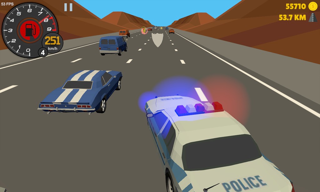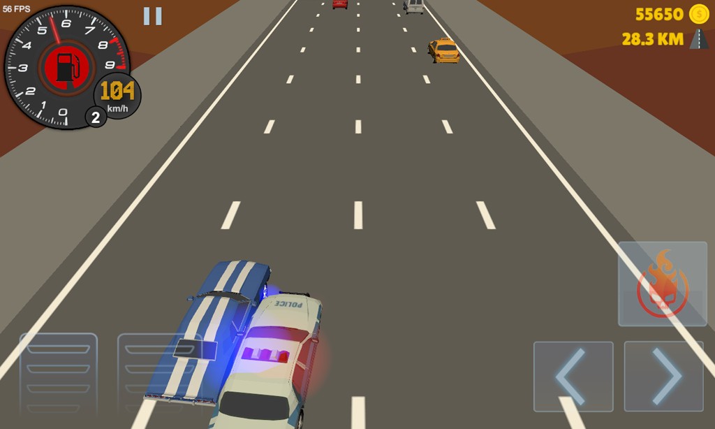 High speed and dangerous scissors no longer dream of! Car Pursuit Traffic Race brings all this adrenaline to your fingertips. Collect all the points by skipping the police cars behind you!