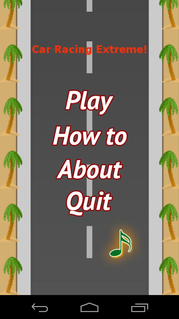 Car Racing Extreme! Is an all new free racing game! This is a racing car game with tilt action! Simply press the screen for speed and tilt your phone from side to side to steer your car. This game is all free and fast downloading! This is also an easy racing game for kids.