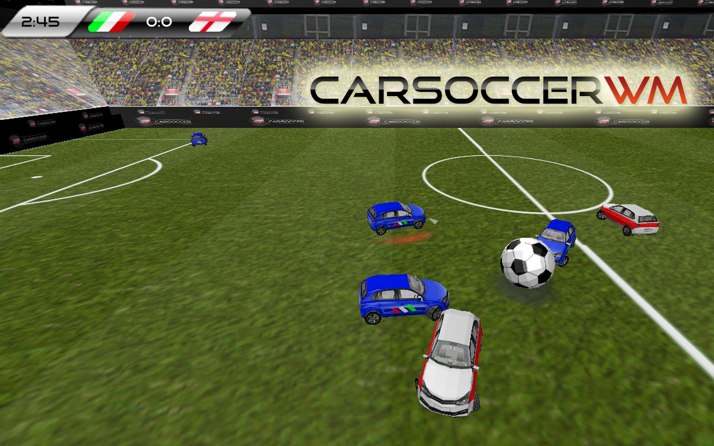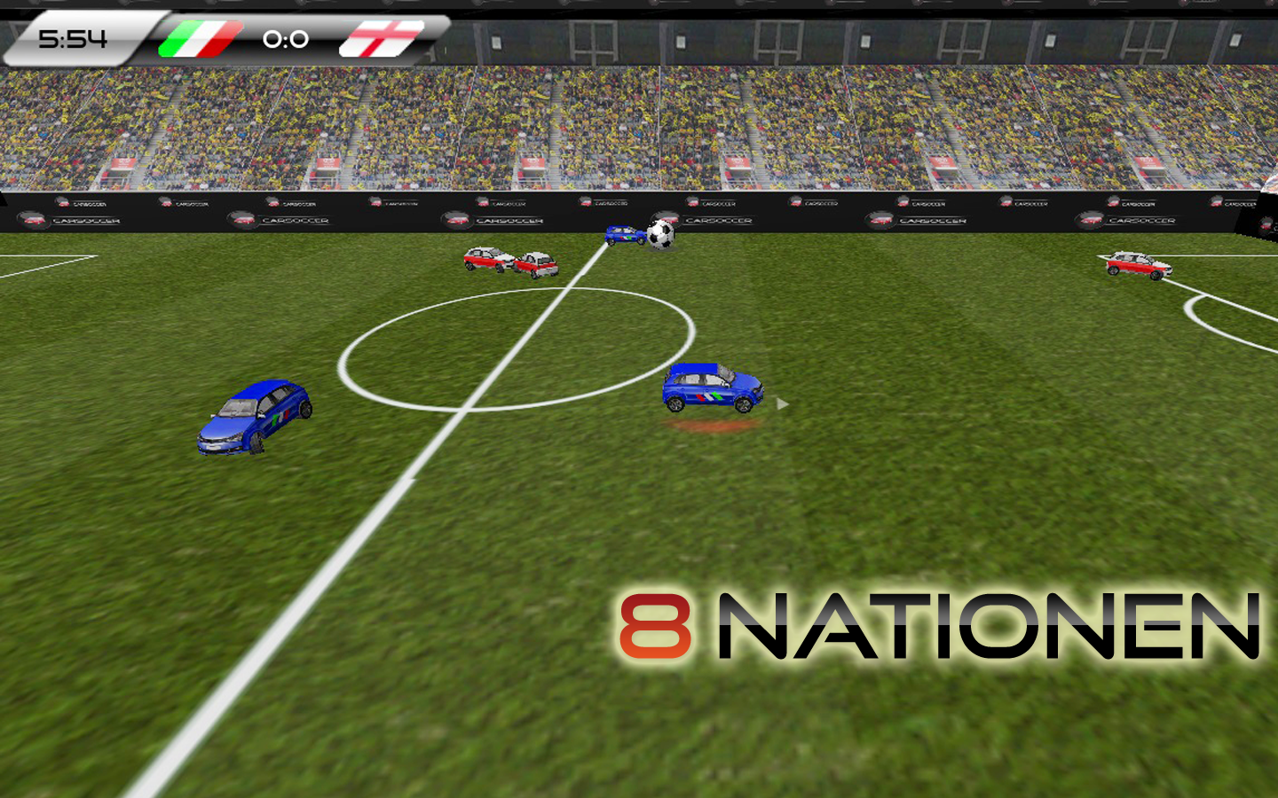 Pure Soccer! Forget about Lionel Messi, Christiano Ronaldo or Manuel Neuer! New Heros will be born on this soccer field. You can choose one out of 8 nations and you will try to arise from these to gain the title "carsoccer world champion". Play as Germany, Spain, USA, France, England, Argeninia, Brasil or Italy and show us all that your are the one.