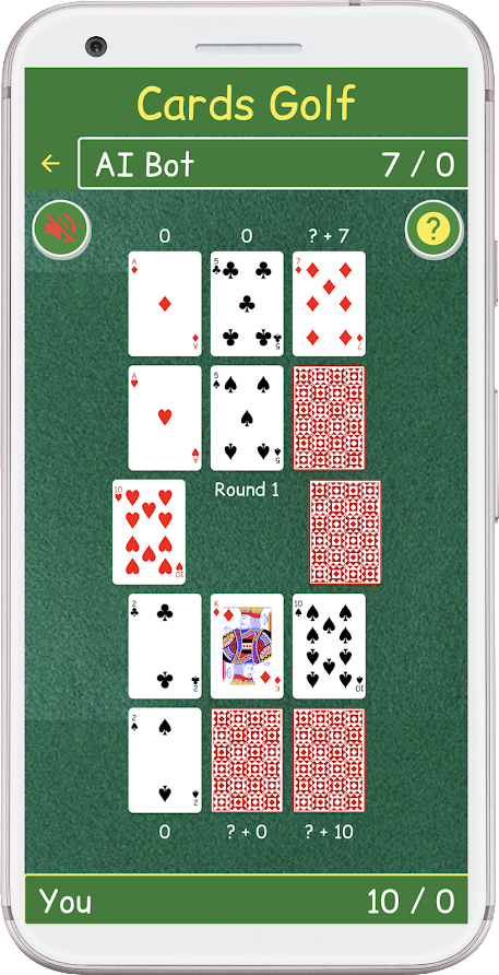 Players make turns drawing a single card from either the draw pile or the discard pile. The drawn card may either be swapped for one of that player's card, or just discarded. If the card is swapped for one of the face down card, the cad swapped in remains face up. If the card drawn is discarded, the player's turn is passed. The round ends when all of a player's cards are face-up.