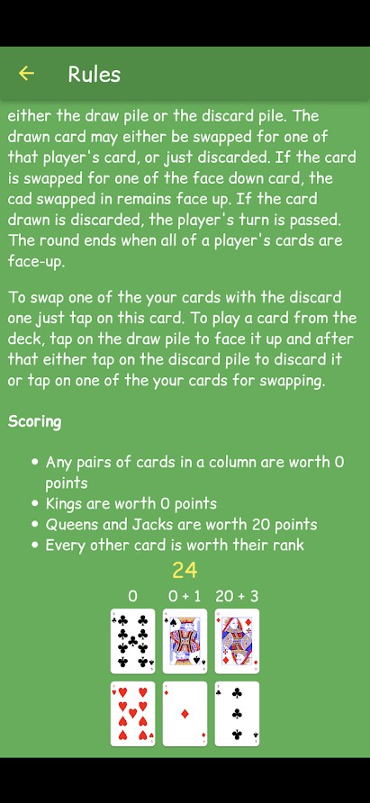 To swap one of the your cards with the discard one just tap on this card. To play a card from the deck, tap on the draw pile to face it up and after that either tap on the discard pile to discard it or tap on one of the your cards for swapping.