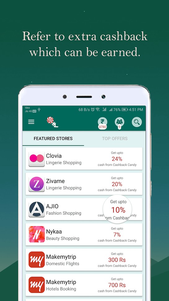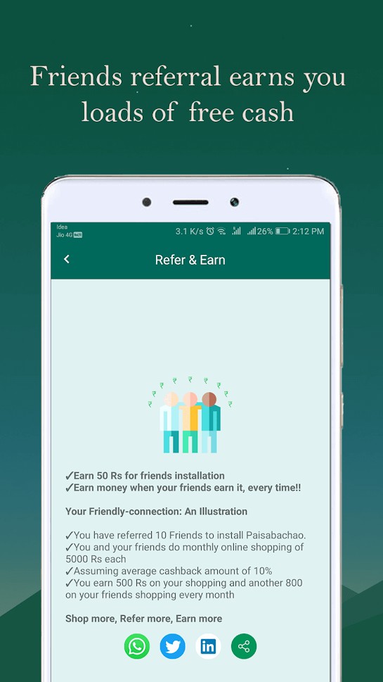 5. Excellent incentive to have friend connected. Refer your friends and get cashback on their shopping for lifetime. Industry best referral program.