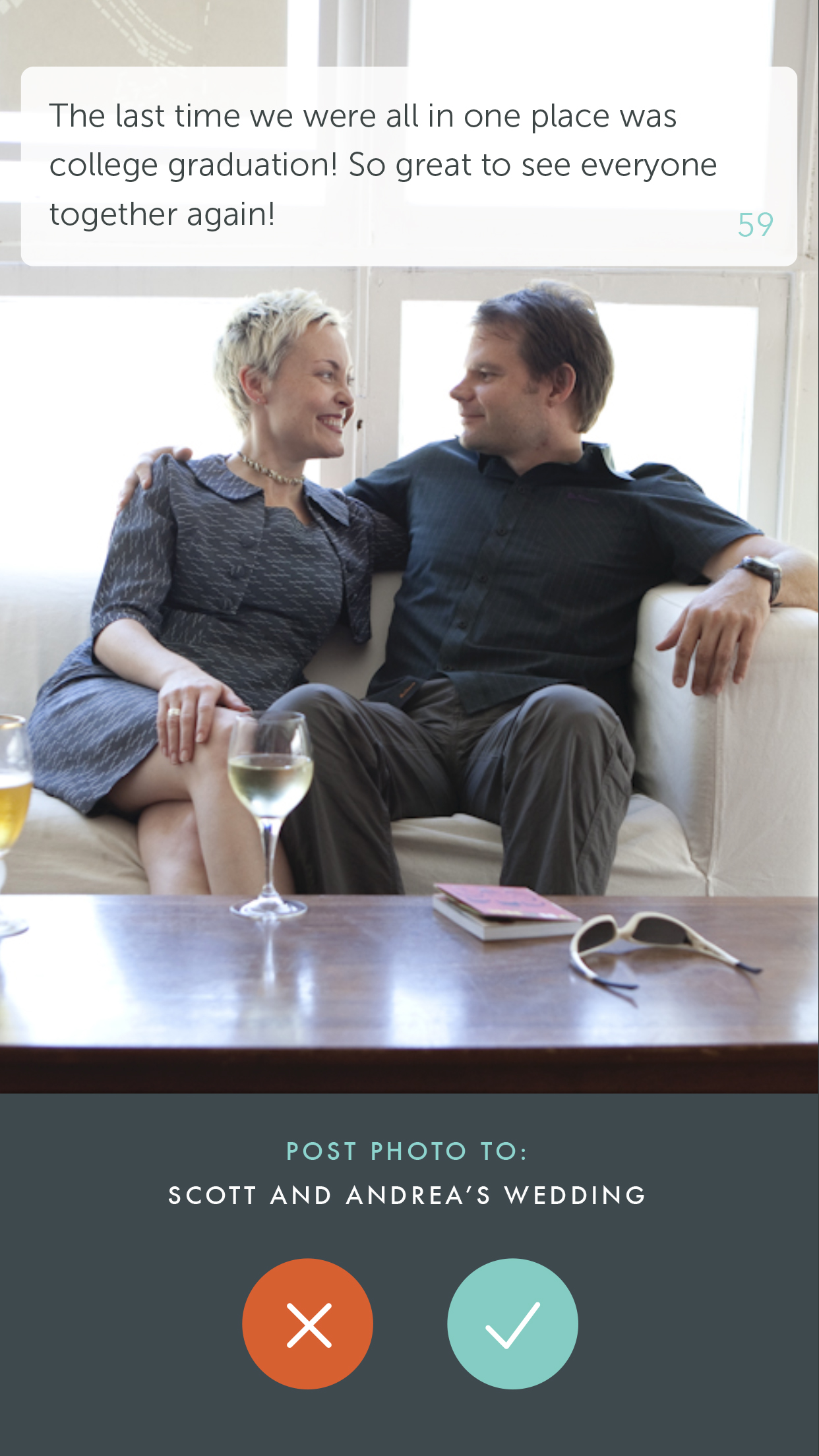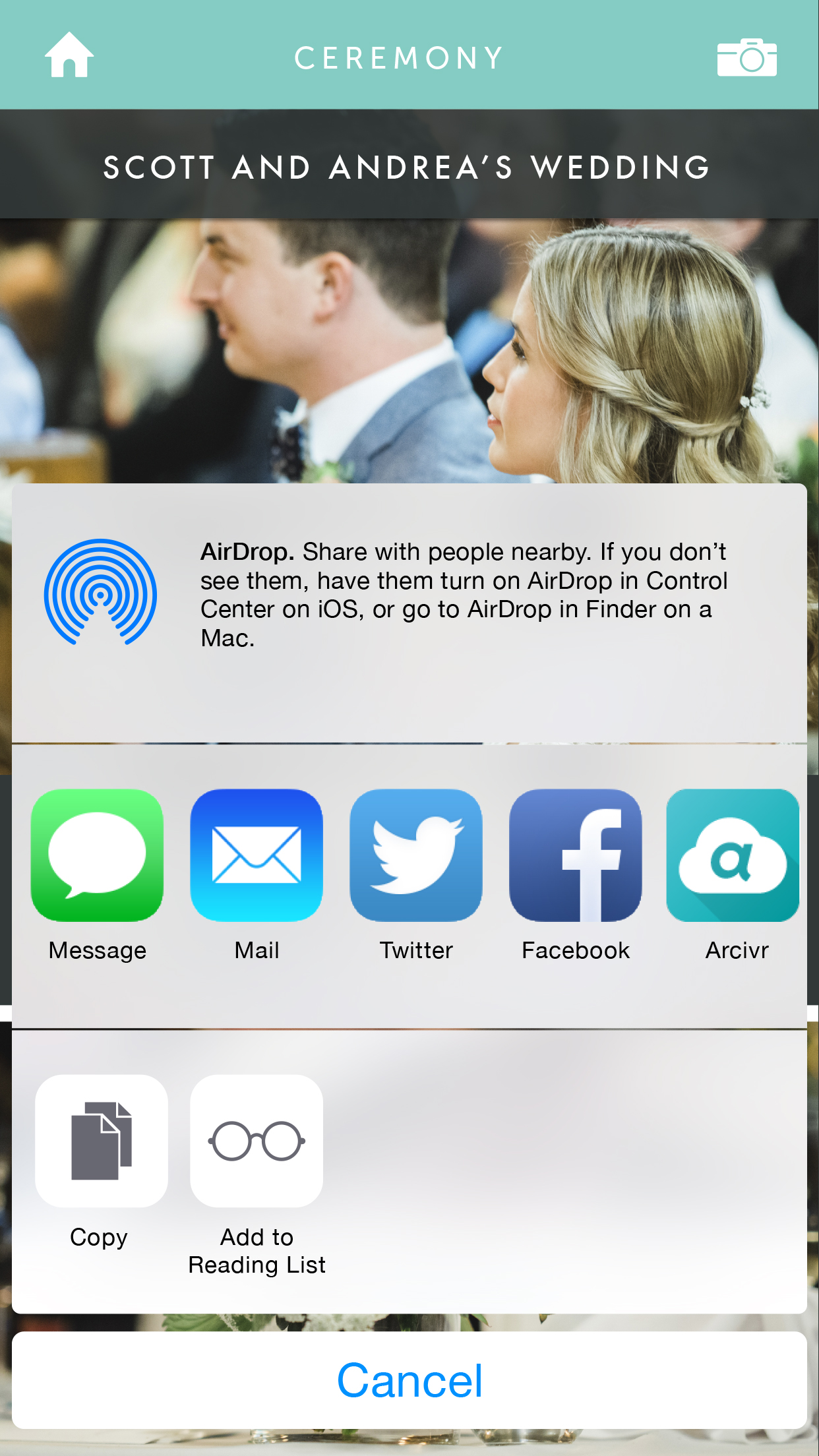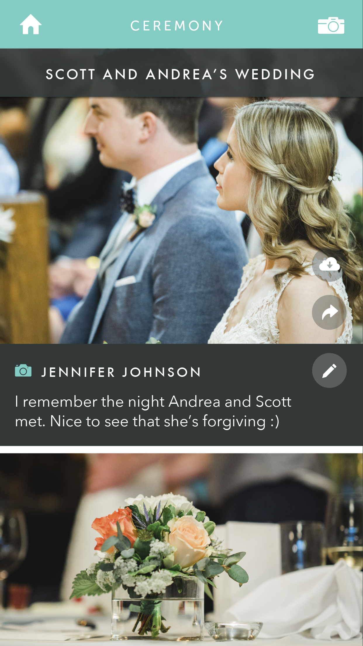 – Ceremony's camera lets guests take new photos and videos right inside the app! You can also add photos and videos taken with other apps!
