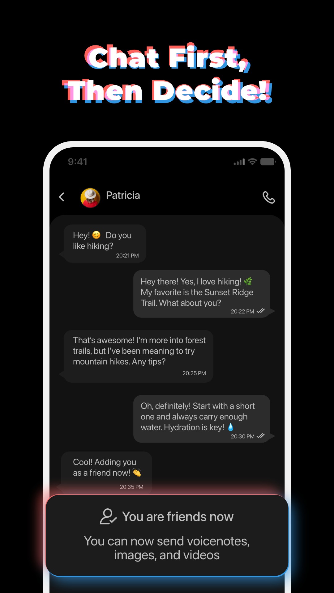Chato is a secure chat app designed for fast, private conversations with strangers. As a leading chat app for connecting with random people, it offers anonymous chat and private messaging with powerful features like gender filters, encrypted messages, and self-destructing media. Whether you're looking for a fast chatting app or a trusted random chat platform, Chato makes it easy, safe, and fun to meet new people.