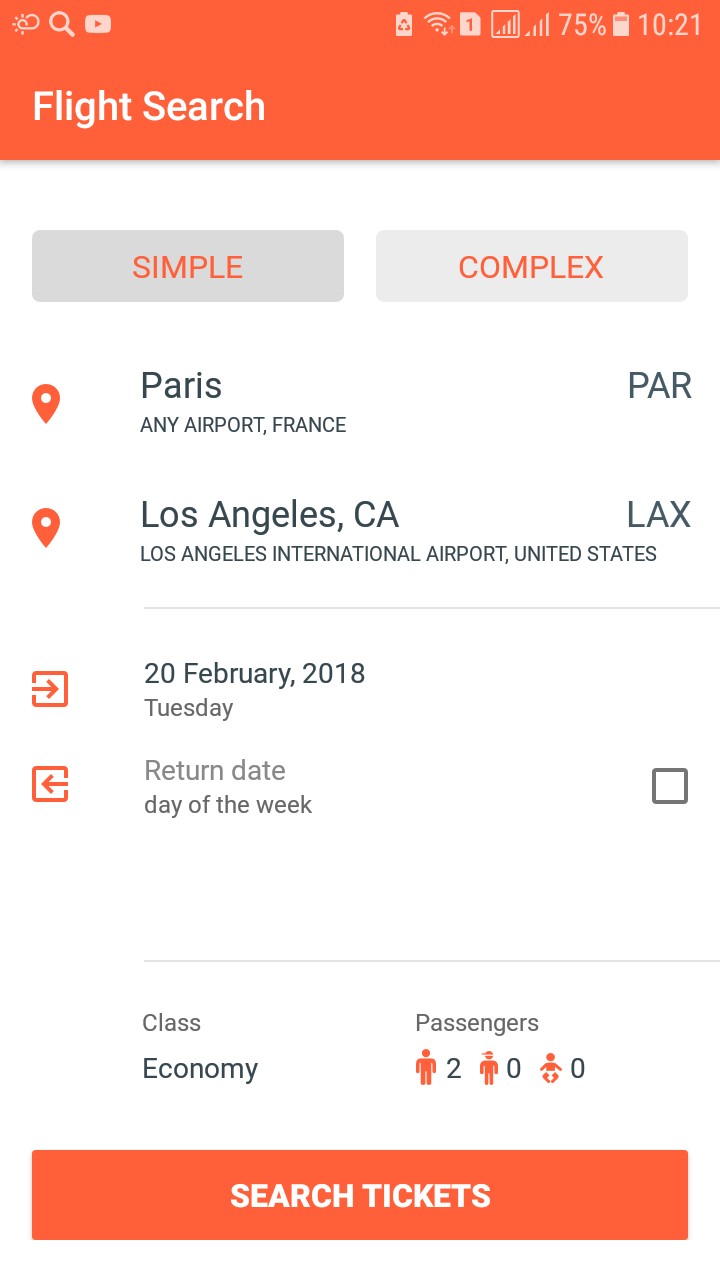 In our days within the Google Play store, there are several apps to assist you to compare flights costs from all airlines - all international airlines & domestic airlines. All cheap airline tickets booking engines on CheapoFlights app conjointly solve same tasks: to go looking prices from best flight comparison sites, sorted it by your selection, find airfares from domestic and international flights the low-priced airlines and provides the users to book cheapest flights from trusty airlines and book cheap flight tickets.