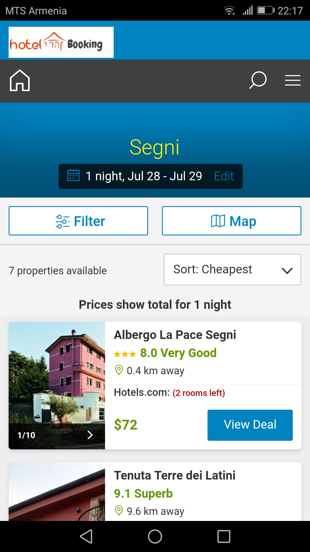 5. Make sorting by filters, search hotels and book it with cheap price.