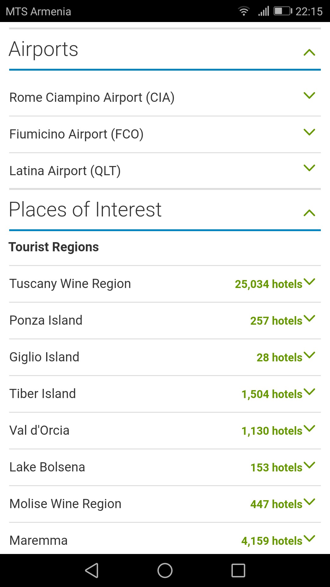 4. See Featured places in your preferred country, airports, places of interest, provinces, tourist regions, Cities,