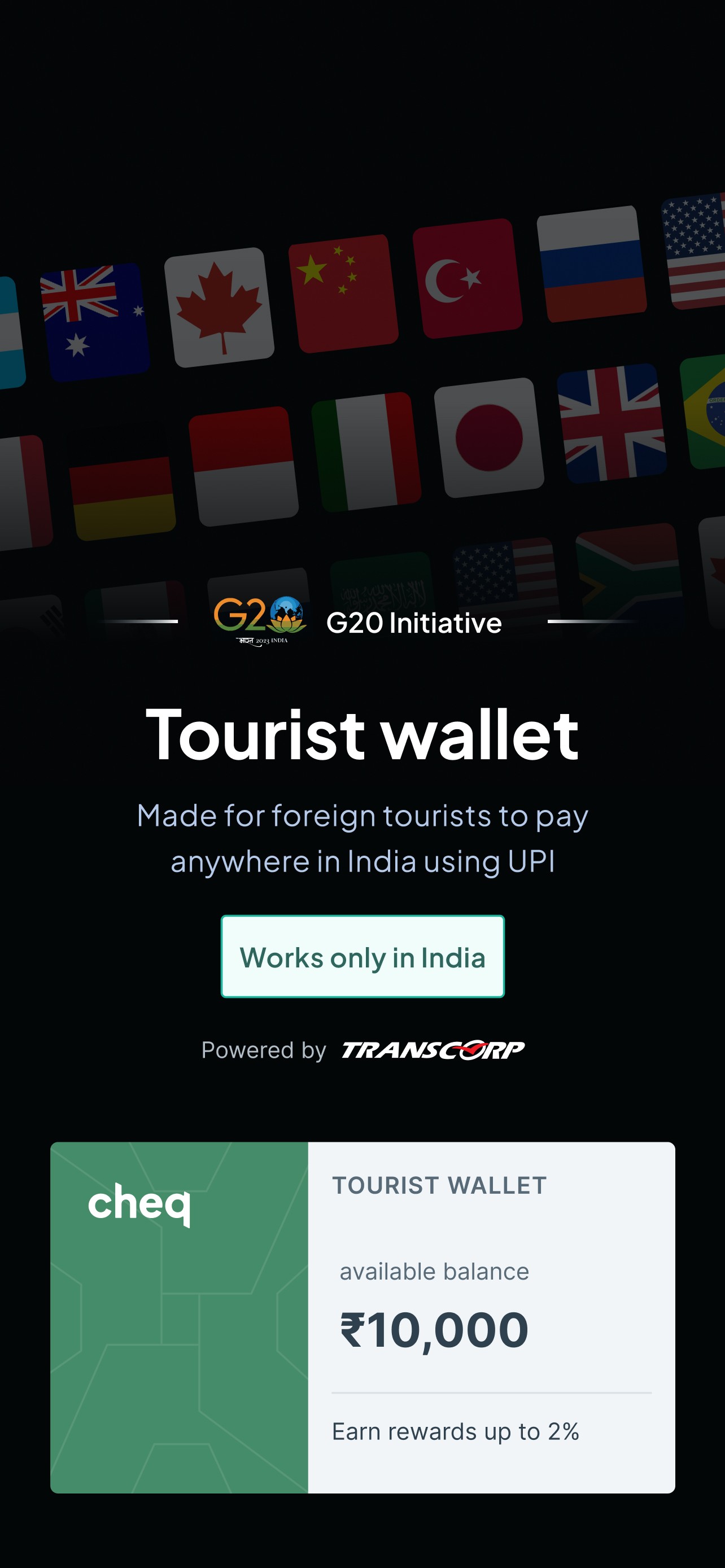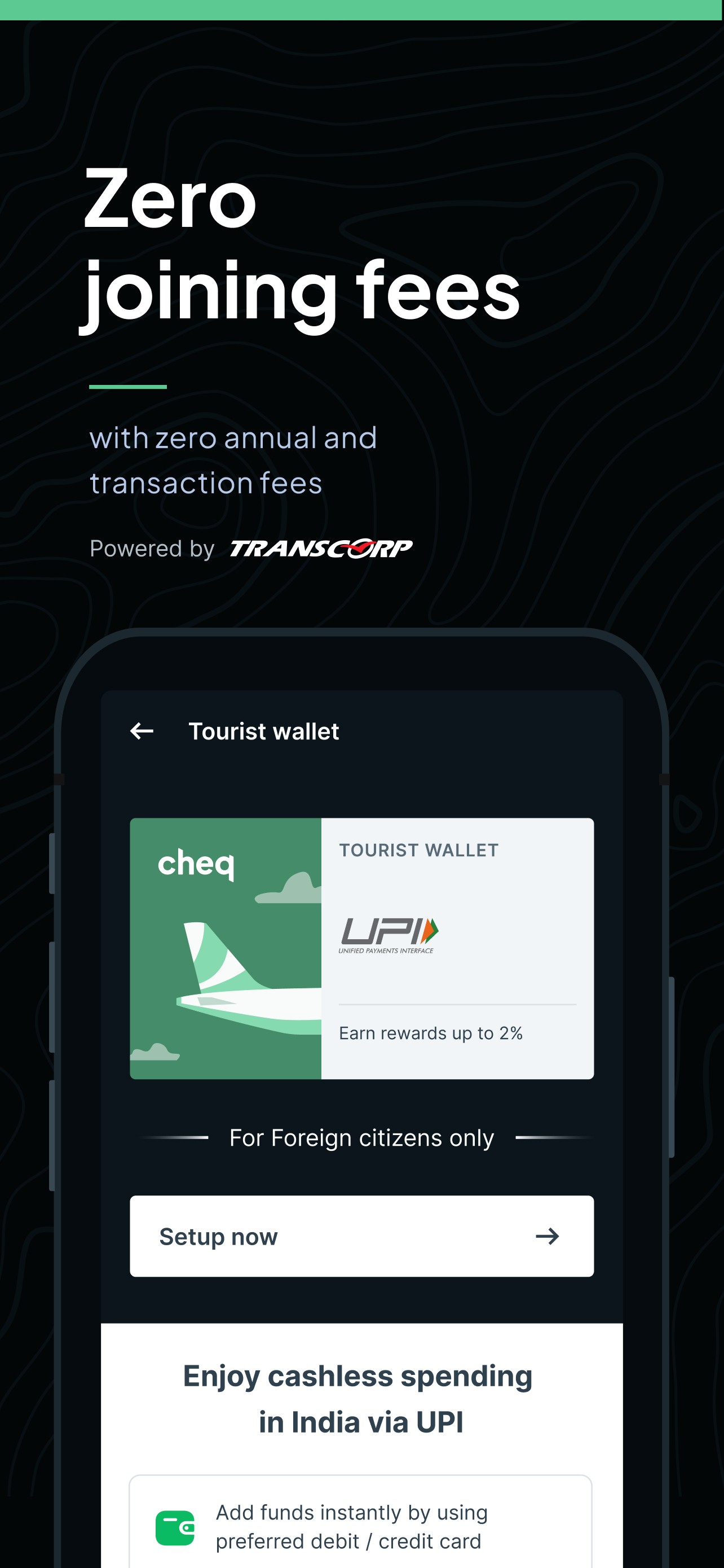 Cheq UPI is one of the largest mobile wallets used for online payments such as sending and receiving money, mobile recharge, paying utility bills, online and in-store purchases, and more. Cheq UPI for Foreign Tourists is the Unified Payment Interface that allows a seamless and secure digital payment system for foreign tourists in India. Cheq UPI also gives offers and deals for shopping online and making payments.