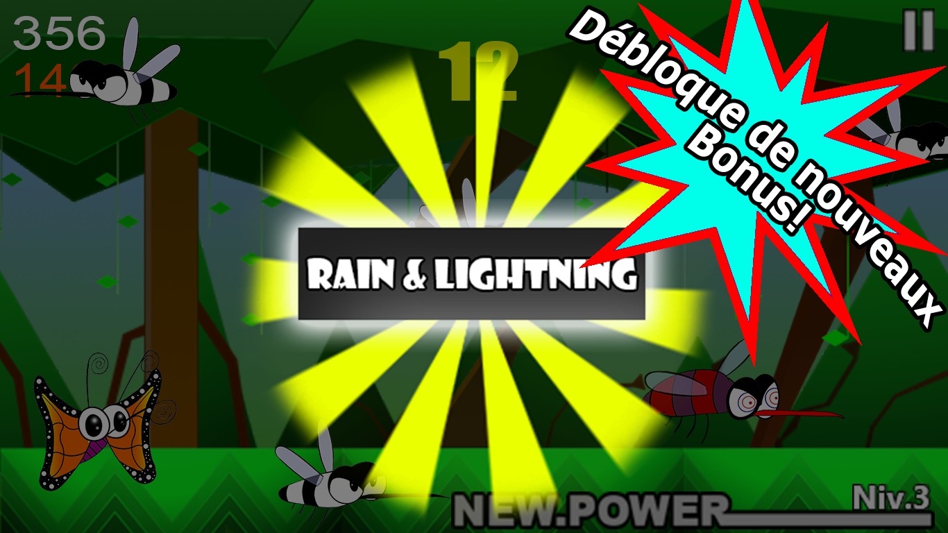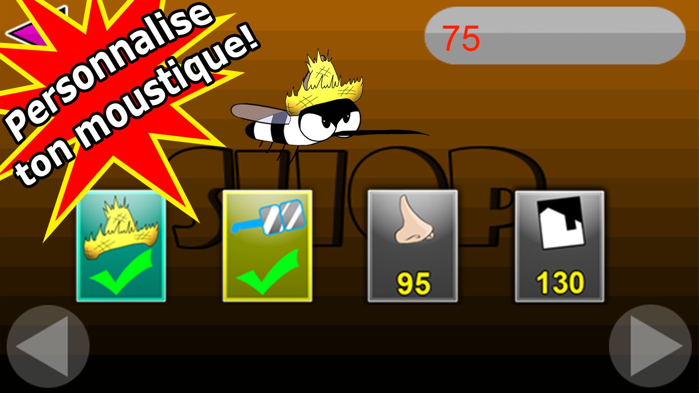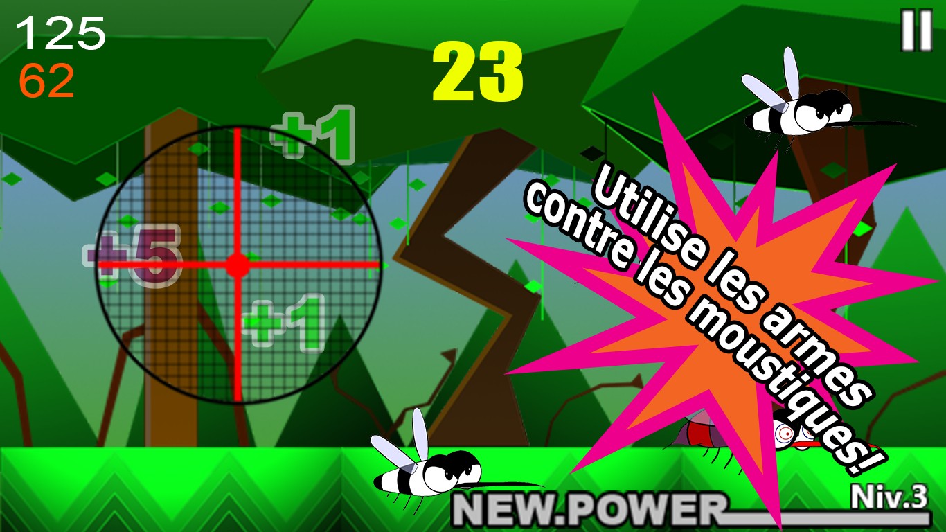 The purpose of the game is to eliminate most mosquitoes in an allotted time. Levels Ups, Bonuses, customizations of mosquitoes there is for all the tastes! With his system " New. Power " he permettera you to gain new bonuses in front of mosquitoes such as the "Chikungunya" and the "Zika", the more you eliminate from mosquitoes, the more your bar of " New. Power " will increase and shall win in level!