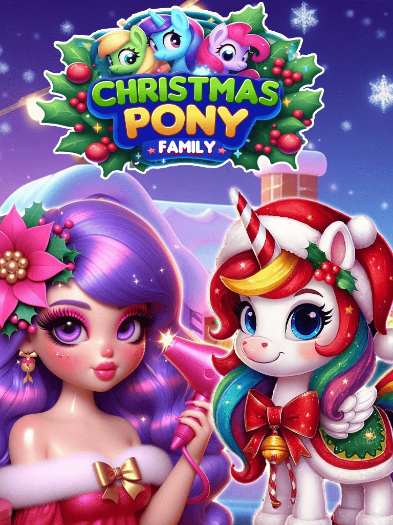 Welcome to Christmas Pony Family — a cozy holiday world where you care for a family of magical ponies, decorate Pony And Her Family, and enjoy fun games with festive themes. With your other pony friends, dress up princess ponies, run pony salons, and complete holiday quests to unlock seasonal outfits and accessories.