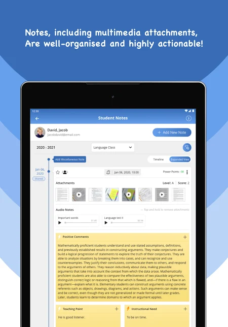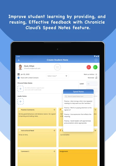 Chronicle Cloud is a versatile app for teachers across all subjects. Designed to help teachers maximize student success, Chronicle Cloud aids teachers in note-taking (conferring and/or anecdotal), team teaching, managing groups, optimizing assessment data, and much more!