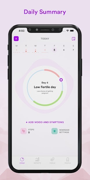 - Notifications and reminders for upcoming menstruation, fertility date window, and ovulation days.