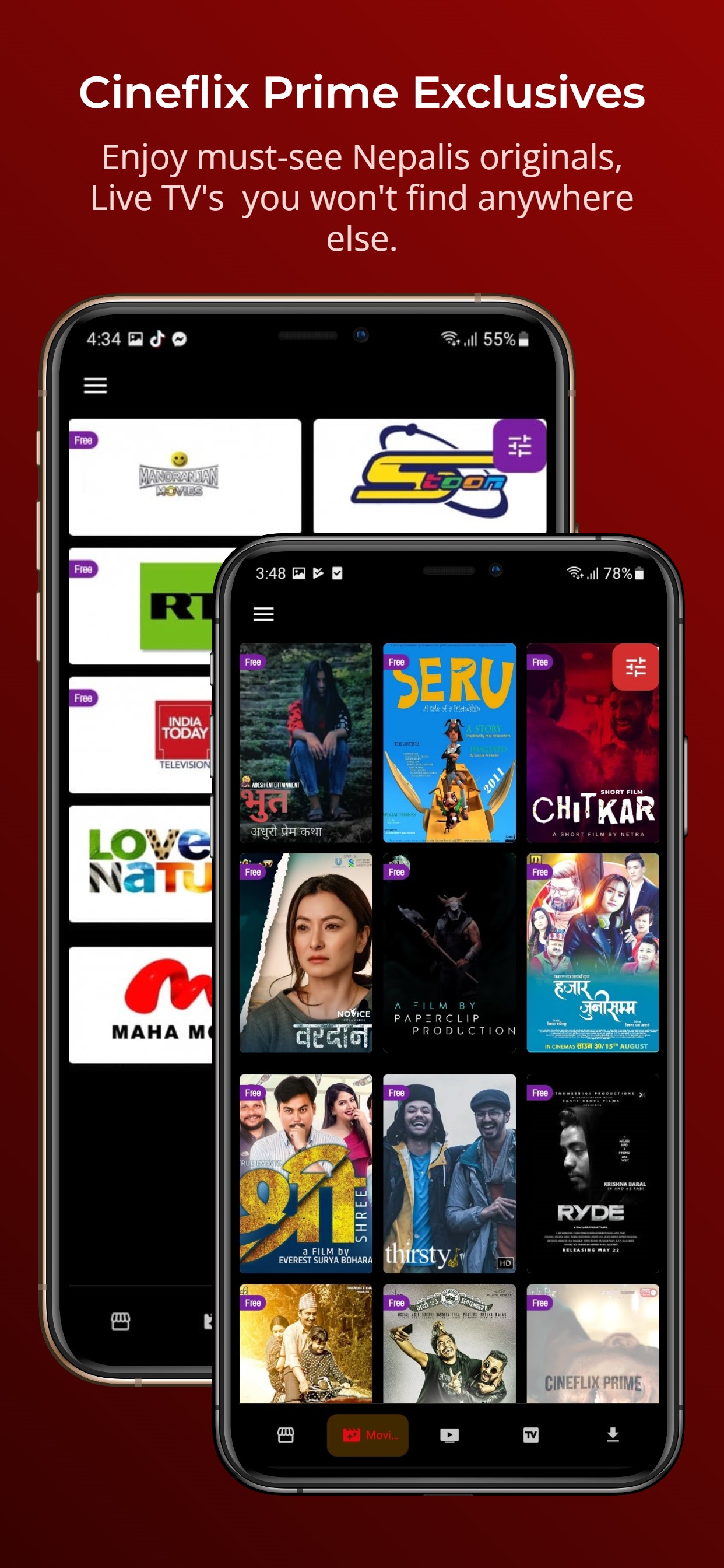 Cineflix Prime is a Nepal Free and subscription based OTT streaming service that allows our members to watch Movies, Series, TVs shows and many more.