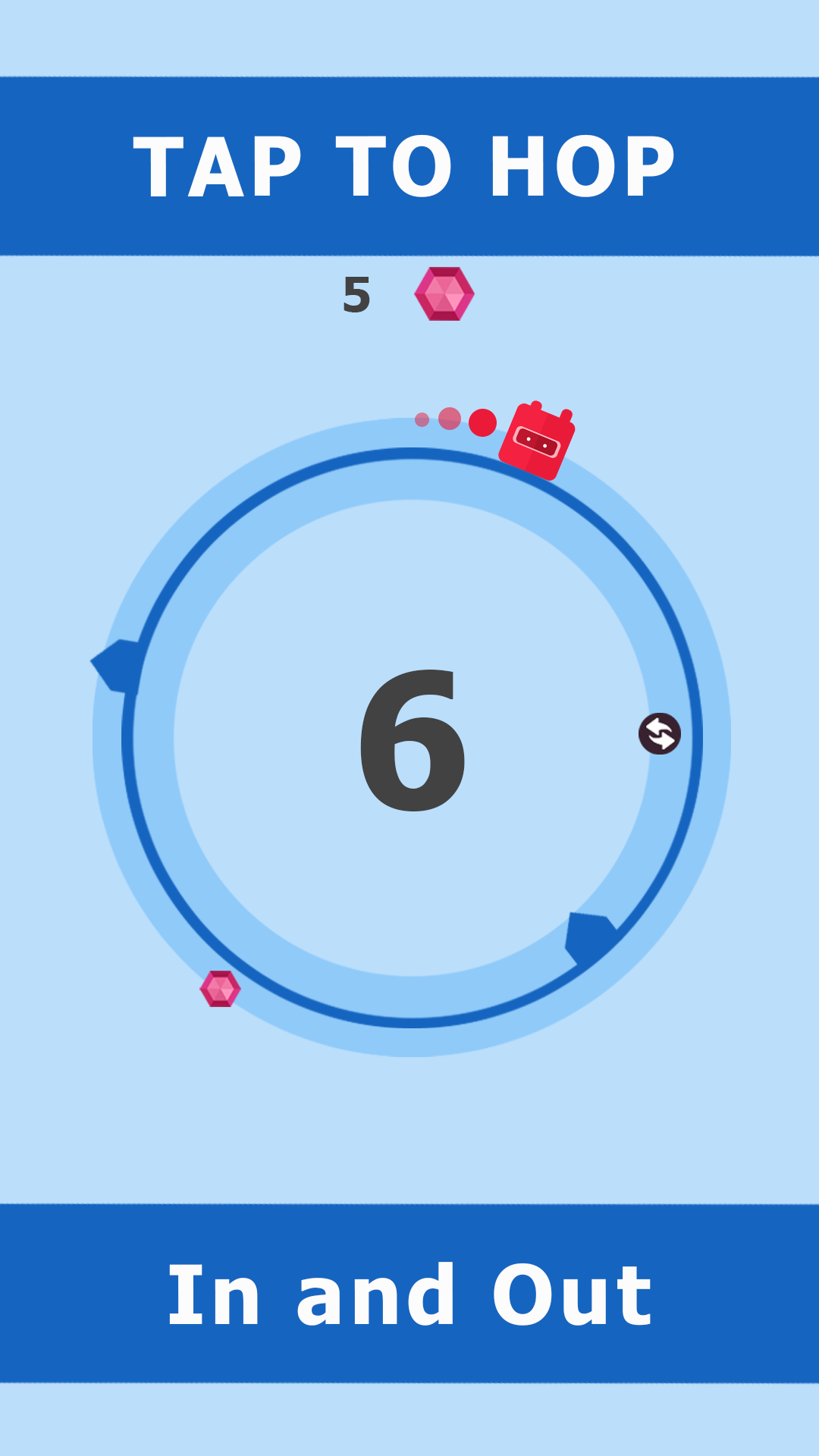 Circle Hop is a new endless physics game crafted for casual gamers who love fast paced, high score games. This game is addictive and will test your reflexes. The objective is simple tap to hop into the circle and hop out of the circle, avoid the obstacles. So are you ready to hop in and out? Tap to find out. Your goal is simple, yet challenging! Beware of the reverse power in the circle! It will disorient you and remember not to flip out!