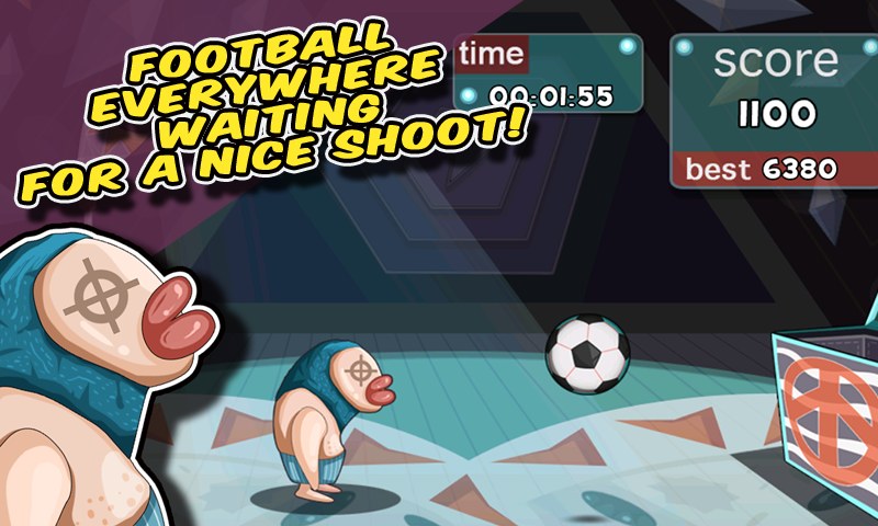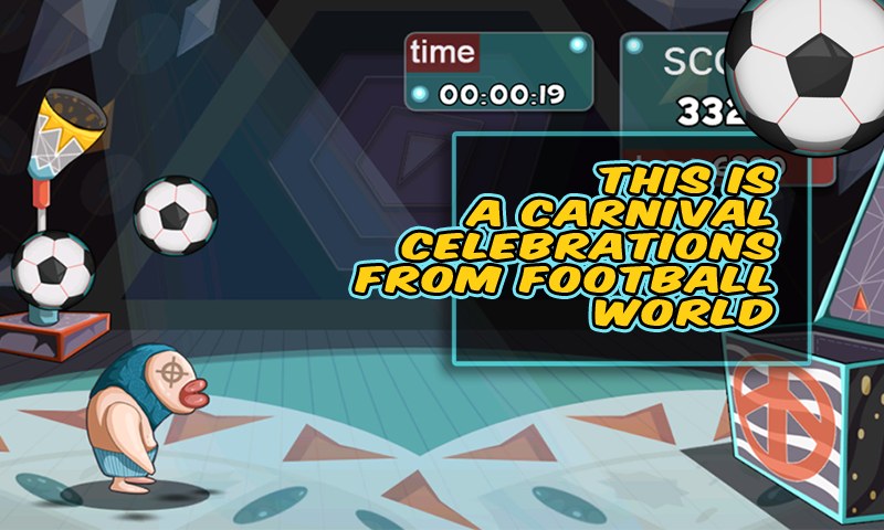 Enjoy Clappy Soccer! Cool heading football game! We are inviting you to enjoy our carnival celebration from soccer world! This is a small but magic stage and all super friends are gathered together. Football is essential, music is essential, and competition is essential of course. Carnival begins and the operations are as follows: Click and move the player, so that it can shoot the soccer into the box on the right side of the stage. There are 3 kinds of balls: 1. Regular soccer: Score got. 2. Golden soccer: Score got and extra time got. 3. Durian: Feel a little dizzy and need to take a few seconds of rest Soccer (Football) everywhere, waiting for a nice shoot!