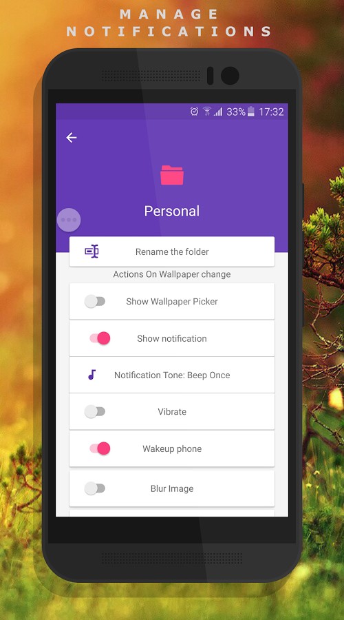 ✔ Complete control over Notification alerts: Enable/Disable Notification, notification tone, vibrate, Phone wakeup