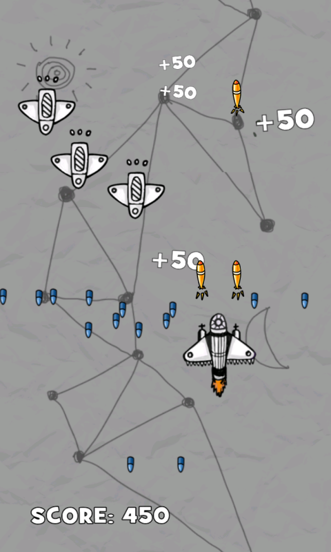 Try to spitcher more enemies. Slide anywhere on the screen with your finger, you can control your aircraft. Avoid Bullet and counterattack!