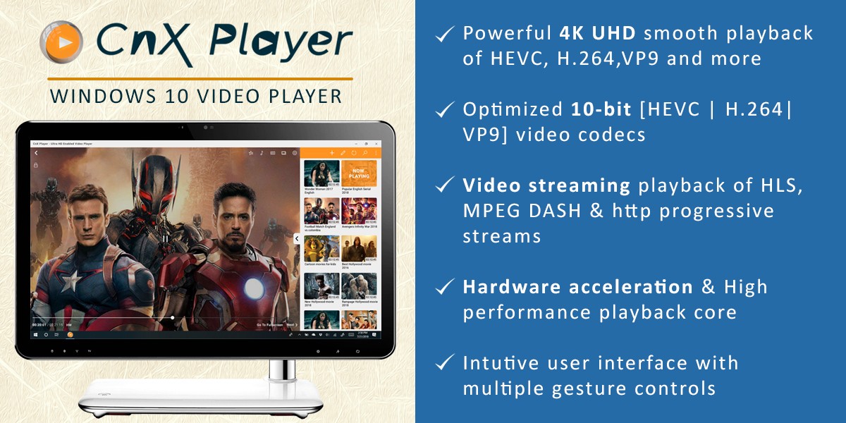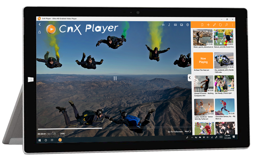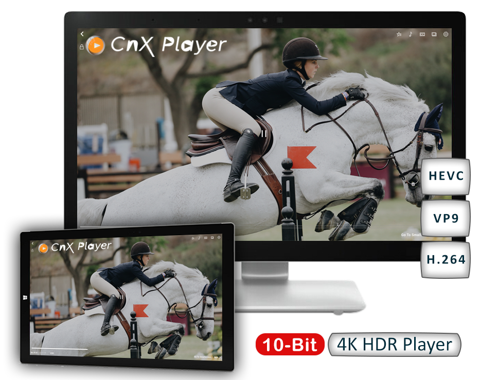CnX Player is a powerful & efficient 4K ultra HD enabled video player for Windows 10 PC & Tablet, Android and iOS – iPhone & iPad. It is designed to give smooth playback of 4K 10-bit HDR content. CnX Player plays popular video formats (MKV, TS, Webm, MP4, XVID, AVI, FLV and more) and supports all video codecs (HEVC, VP9, VP8, H.264 and many more).