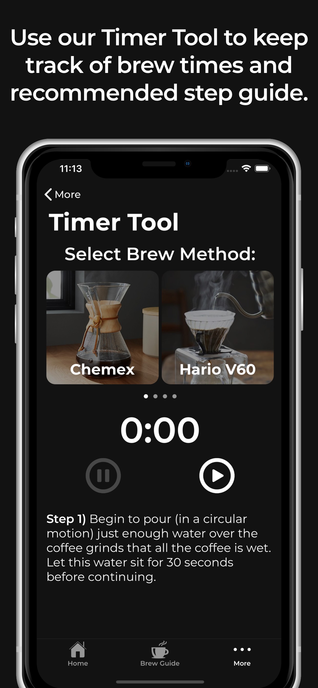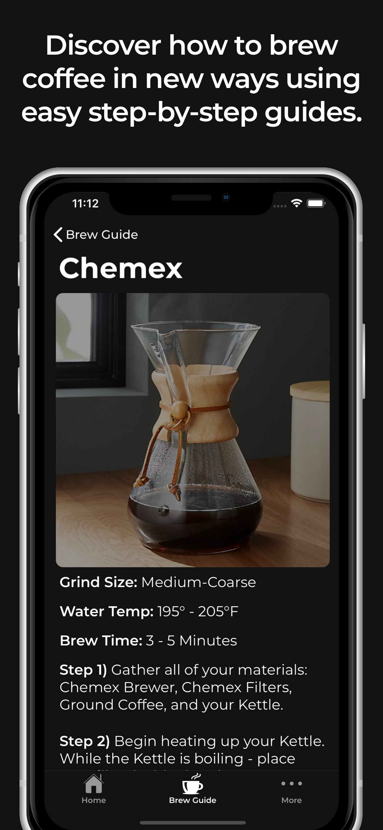 Coffee 101 is the ultimate coffee resource for iOS. This application provides you with brewing guides for some of the most popular brewers: Chemex, Hario V60, French Press, AeroPress, Cold Brew, Moka Pot, Espresso, and Turkish.