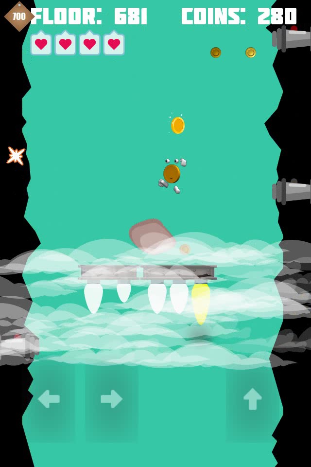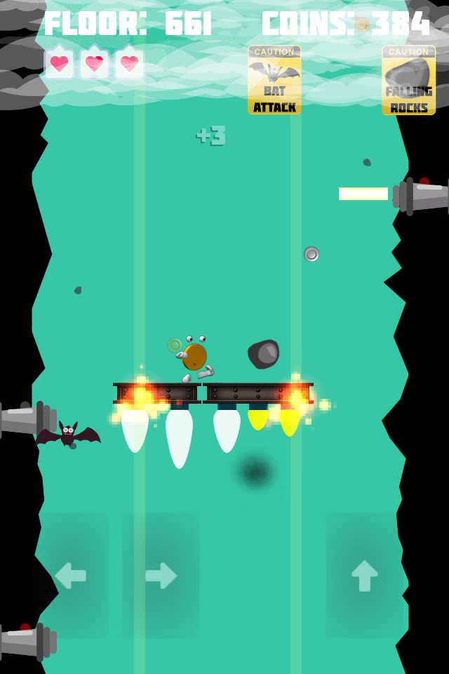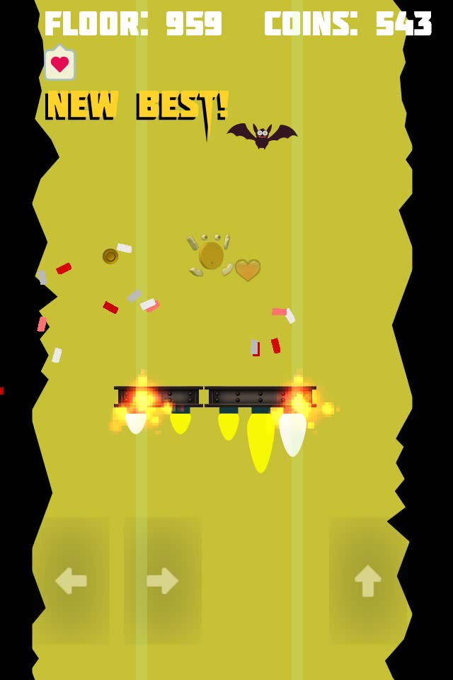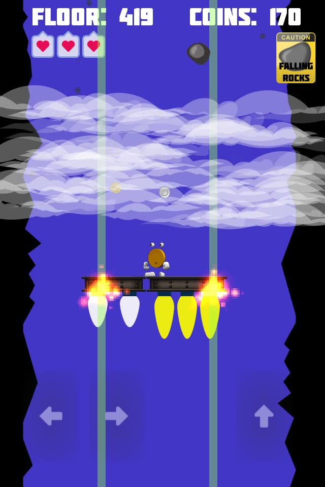 Take to your Rocket Powered Platform but avoid the falling rocks, lasers, vampire bats and the deadly fog. Collect coins and use them to upgrade your platform strength and your lives and see if you can make it further from the depths.