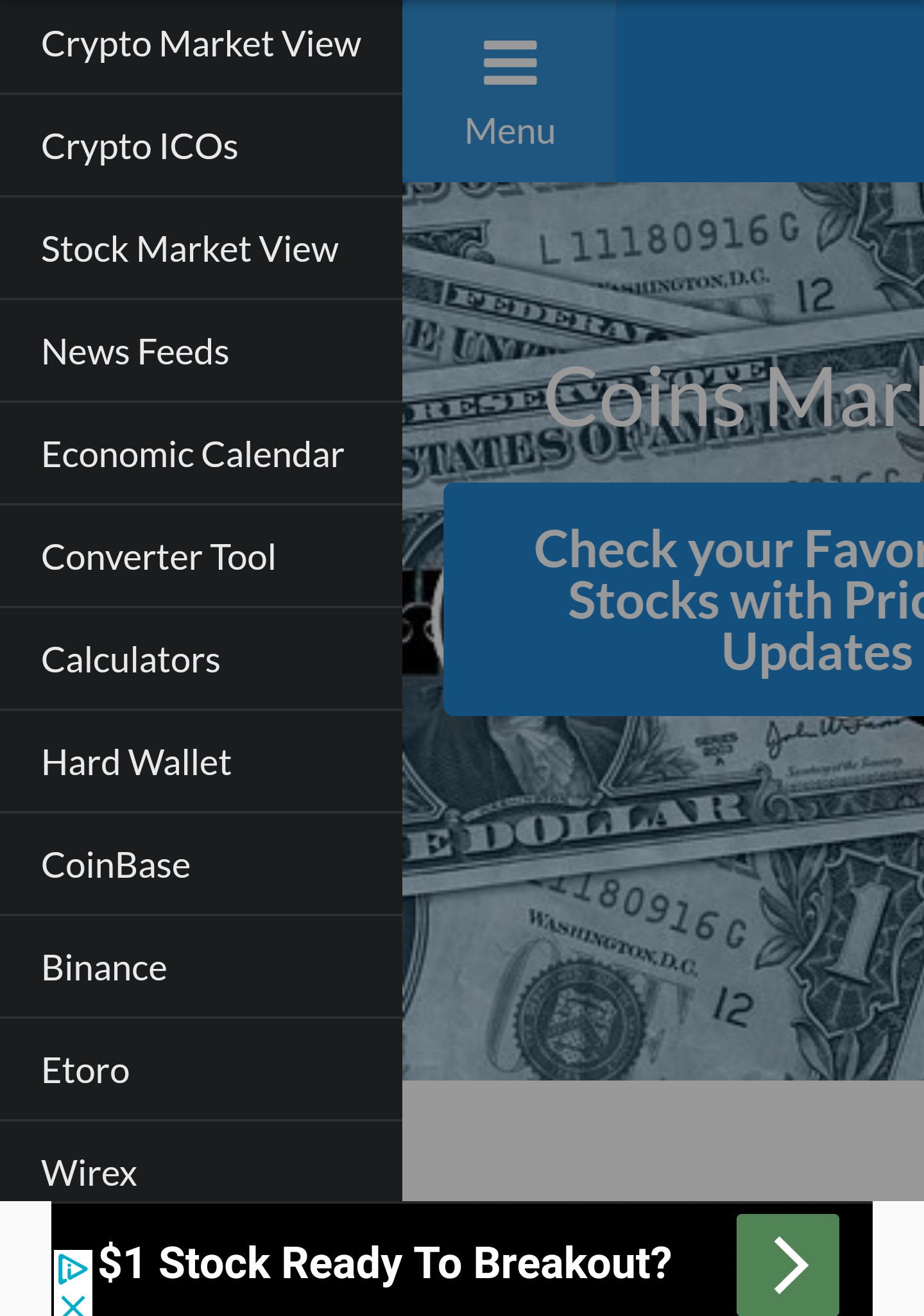 Converter Tool for coins into all types of fiat currencies.