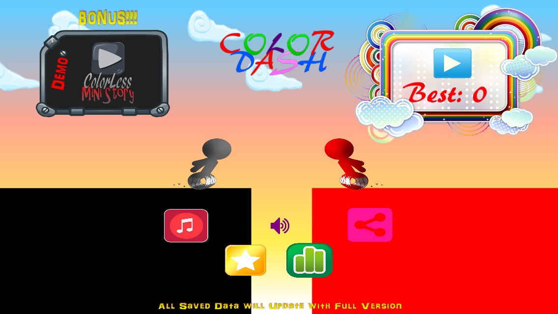 Color Dash is a action, adventure type arcade game with a fast and unique colorful twist. Jump, run, vanish, blast your way thru colorful obstacles while collecting points to beat your high score or challenge people around the world