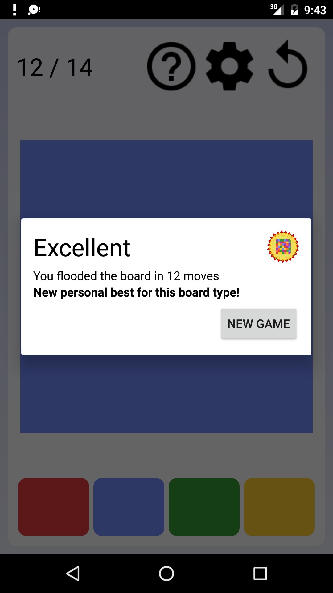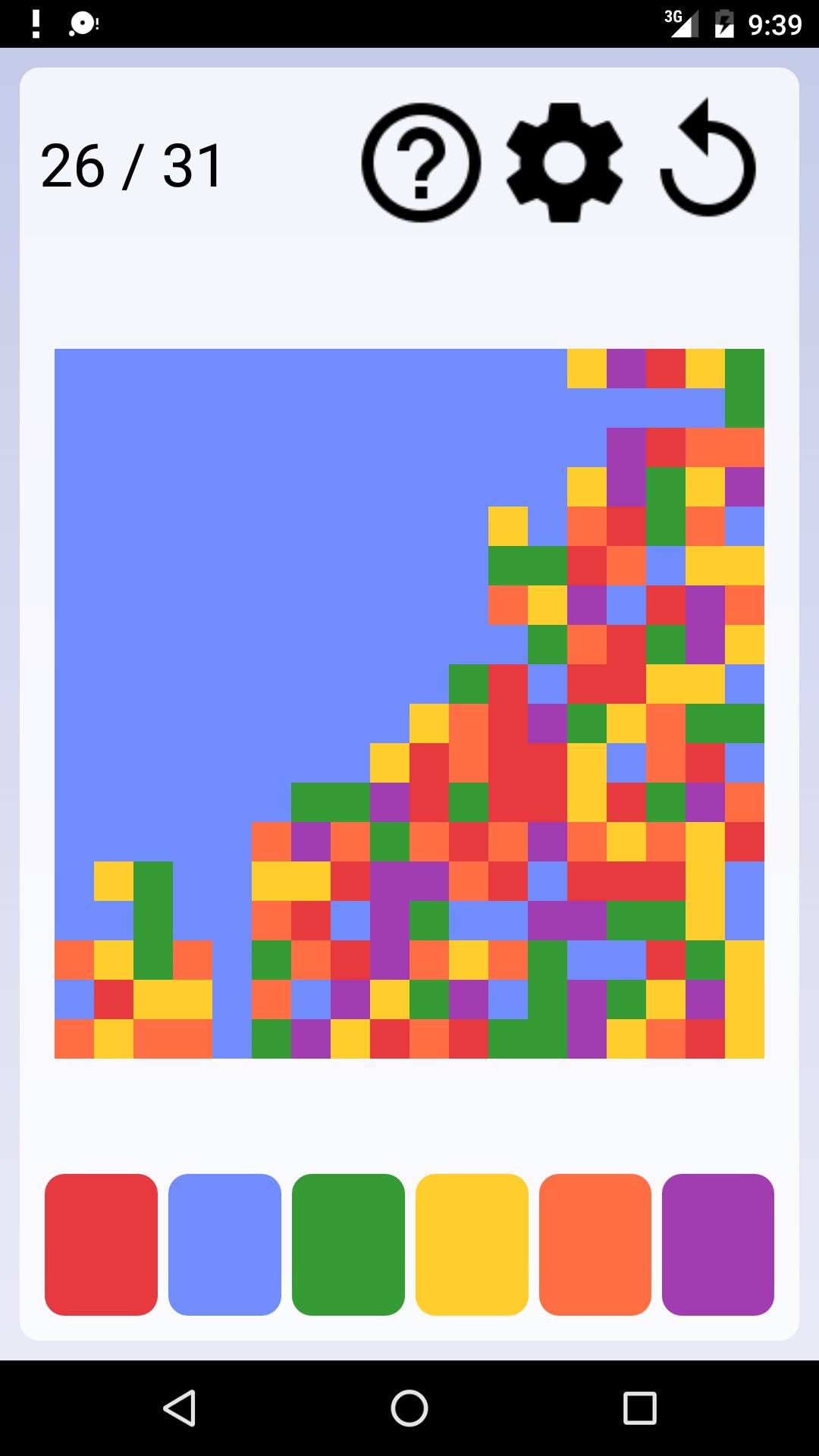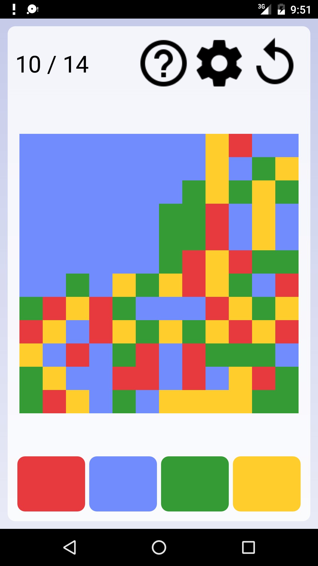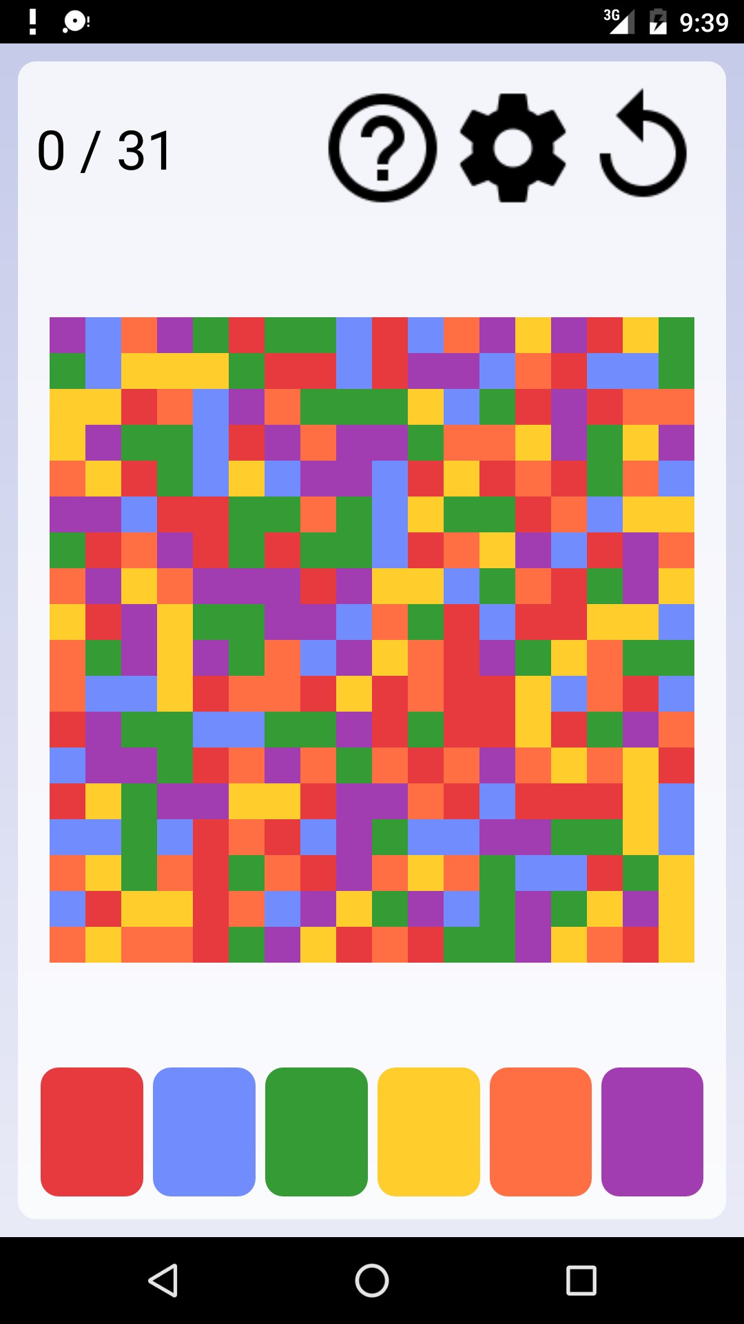 Start from the upper right corner of the board then tap colored button on the bottom of the board. The goal of this game is to fill the entire board with a single color with a limited number of allowed moves.