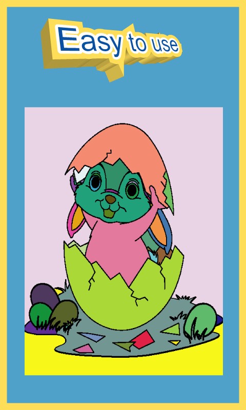 This fun Easter painting app lets kids choose a line drawing or coloring filling draw method. Tap mode button to switch between them.