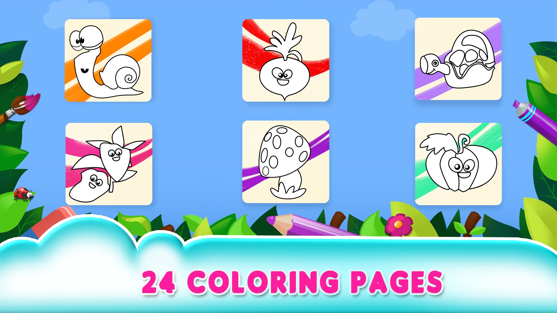 Let your child express his creativity by coloring cute characters, flower, veggies and much more. Coloring has never been so much fun! Kids will develop fine motor skills and have fun in the same time. The app contains free pictures from topics related to the natural world.