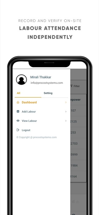 The mobile app can be used along with site fingerprint attendance systems. However, using this App independently helps verify proper daily labour records. Major Advantages are: