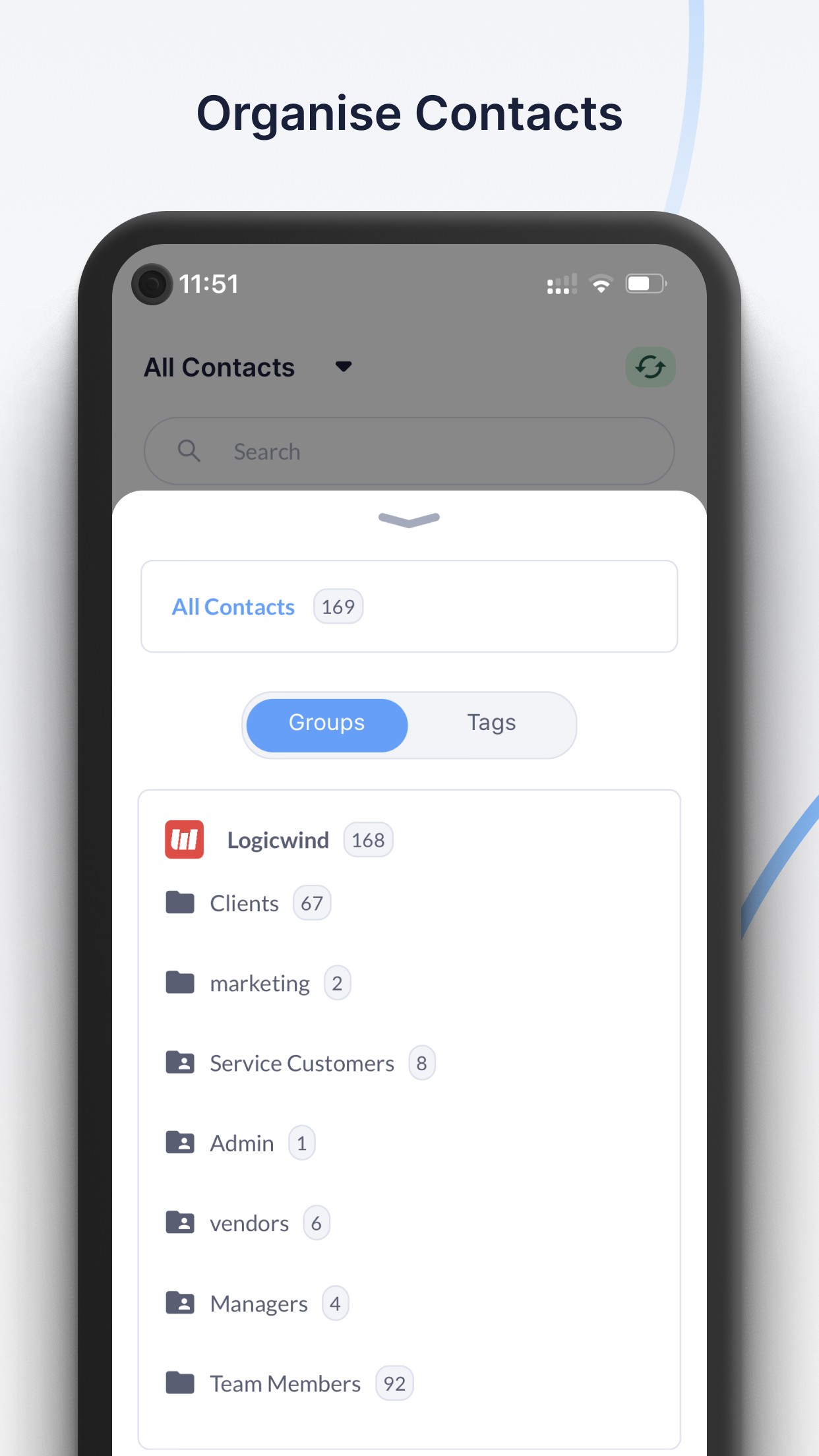 Group and Tags: ContactBook allows you to create Groups to organize your contacts so they can be shared with coworkers. Contacts can also be further segmented using tags for easy searching or filteration.
