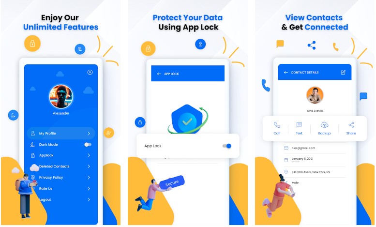 This contacts backup and restore data have an amazing feature of app lock. You can lock your app and secure it with a pin code.