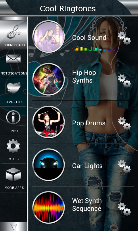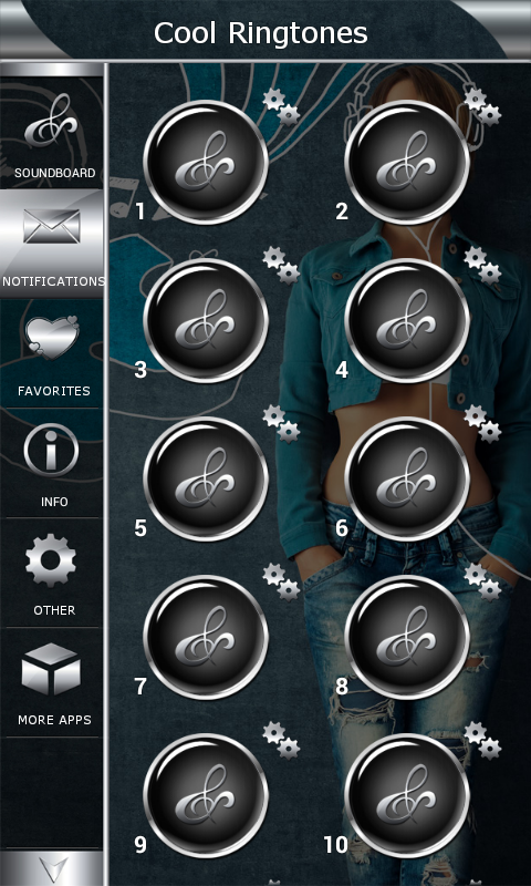 The most wanted Cool Ringtones app for Androidâ„¢ is here for you. This application has the most popular cool ringtones from the web. App is designed to be good for all ages, and the melodies are chosen to satisfy everyone's taste, for kids, teenagers or older people. If you are bored with the standard ringtones for your phone, use rock, techno, disco or club ringtones given in the app to make your phone device more funny and interesting. For those with more gentle taste there are love and romantic sounds, as well as relaxing sounds. Our cool ringtones app is one of the most popular entertainment apps.