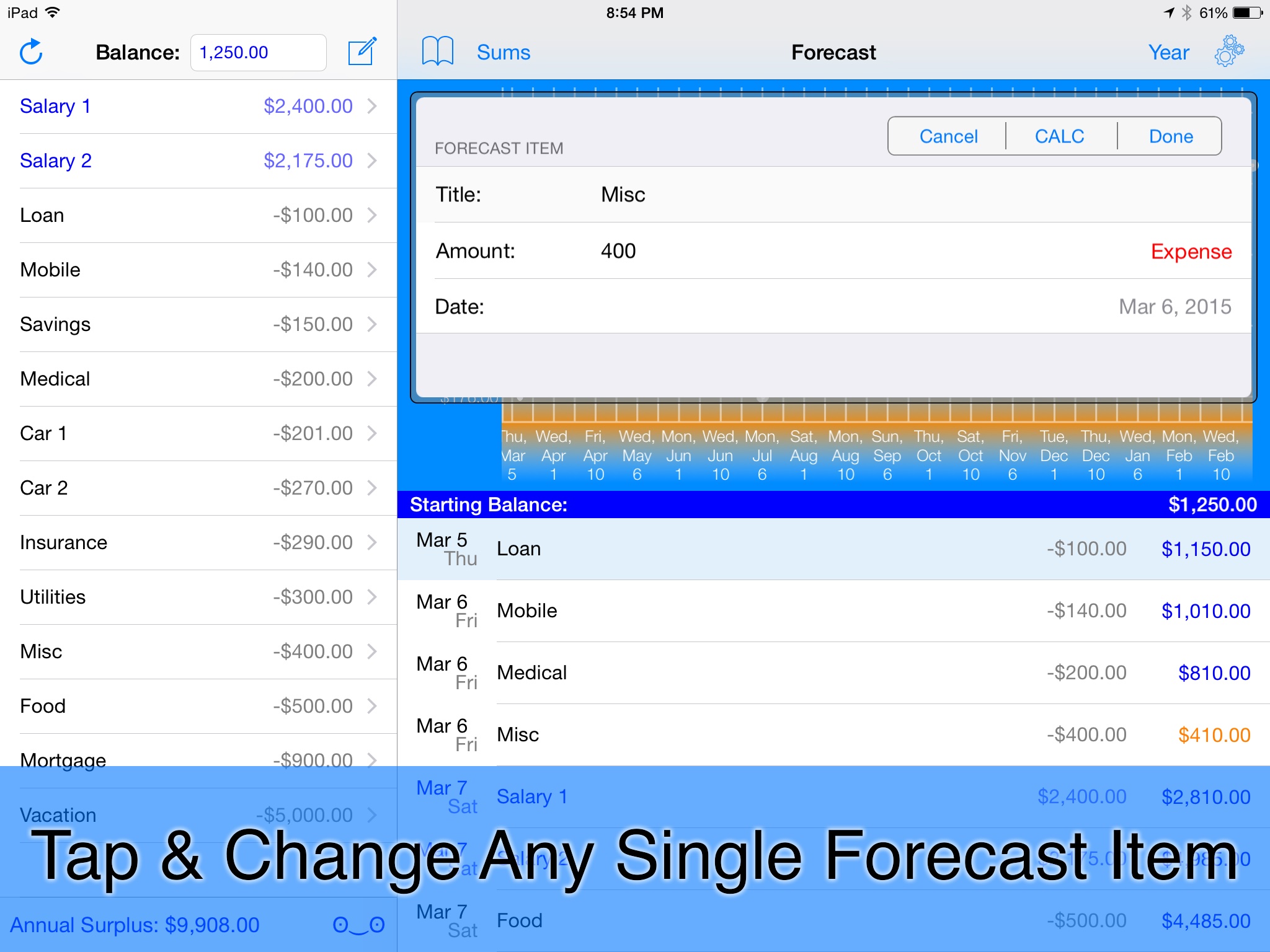 For the most accurate results, just remember to keep your current balance up to date and to modify any individual forecast entries as you learn more about your future incomes or expenses!