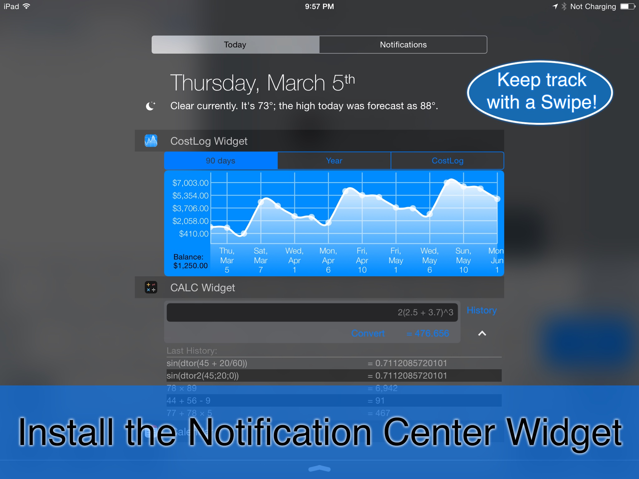Installing the Notification Center Widget will help you stay on top of your life's budget with just a swipe!
