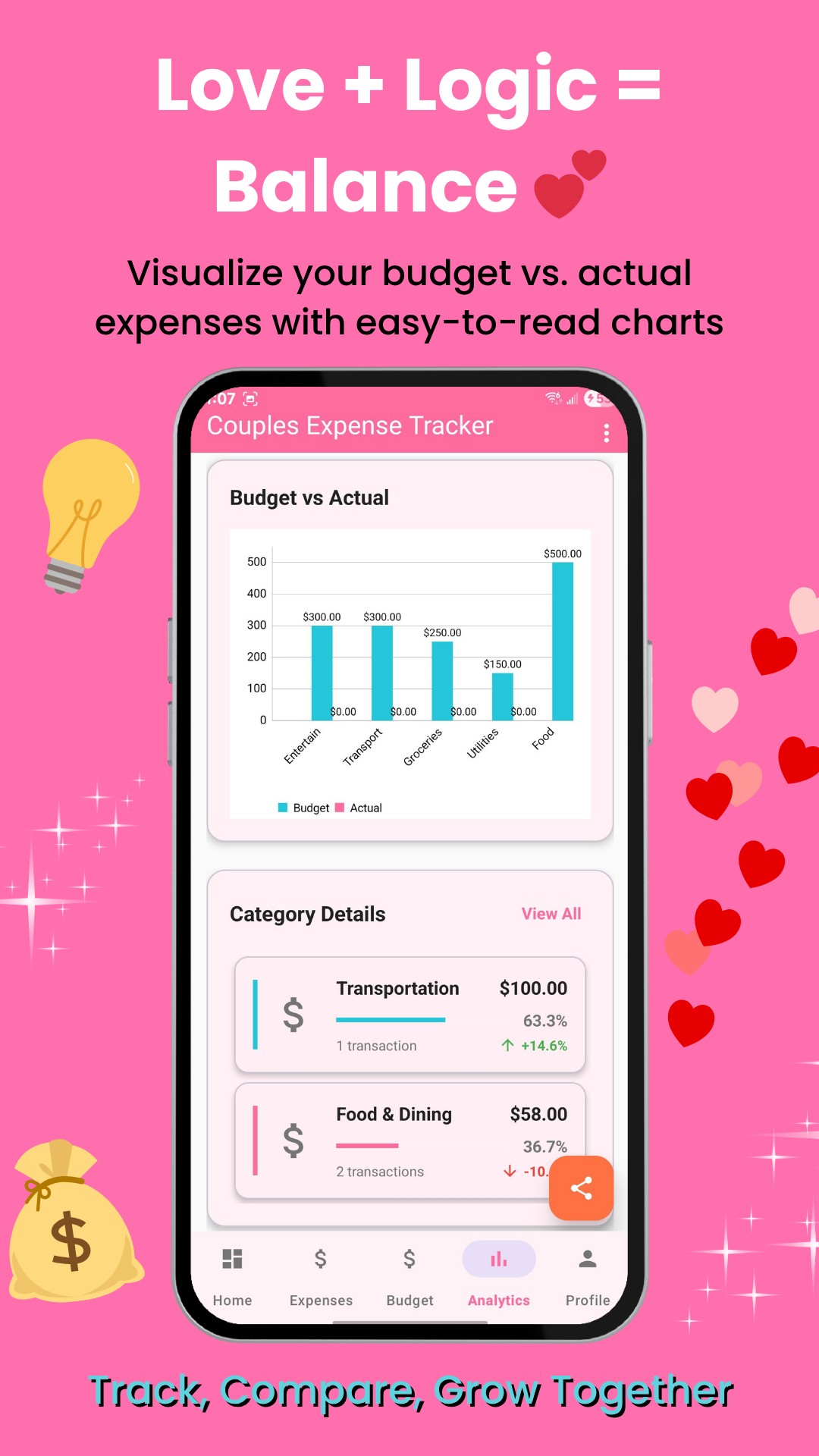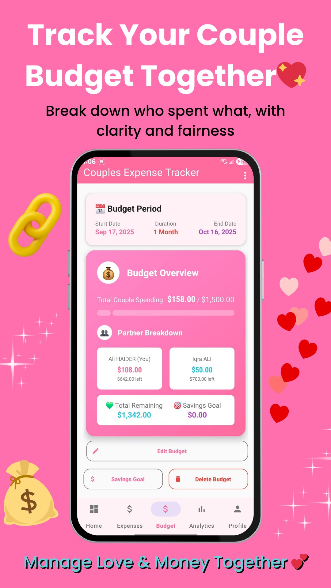 Couples Expense Budget Tracker is the ultimate expense tracker for couples, designed to help partners manage money together with transparency, clarity, and real-time synchronization. Whether you're looking for a reliable joint budgeting app, a simple budget tracker app for couples, or a powerful couple expense tracker app, this tool brings all your financial information into one easy-to-use platform. No more “Did you pay for that?” misunderstandings, every transaction is visible instantly to both partners, helping you build better financial habits as a team.