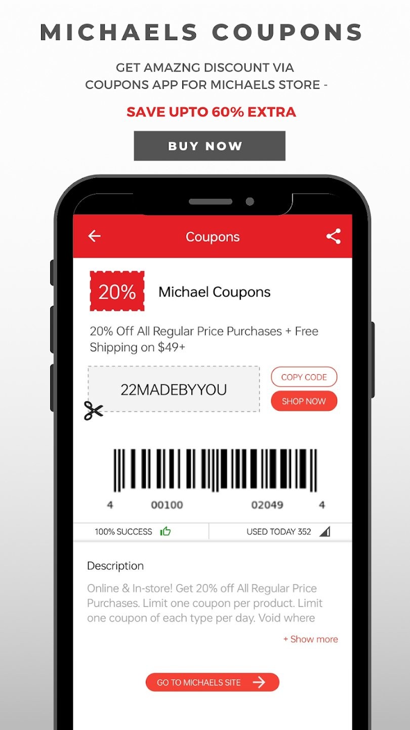 You Will get the latest Coupons for Michael Crafts Store on the above listed categories - if Some of the michaels coupon code are missing then we will get them listed as soon as possible sine our team is working day and night to bring you all the deals.
