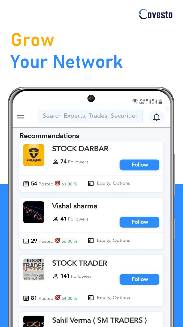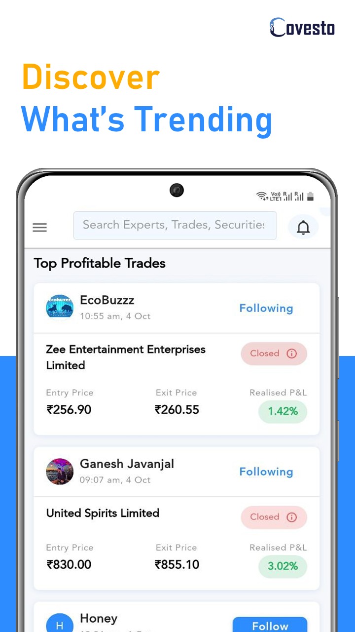 Covesto is an introduction to social trading based stock market learning. Get reasoning backed trade ideas, comment or ask queries, and get expert opinion about your stocks.