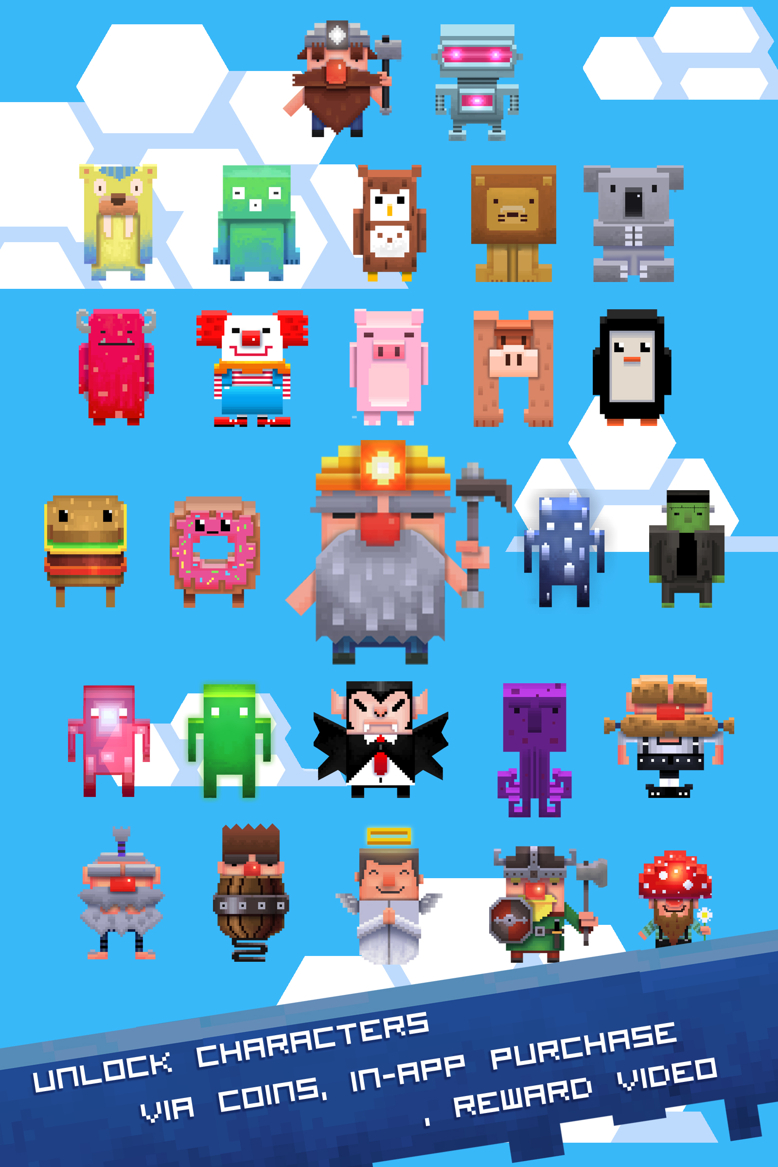 Play as your favourite character including miner, hummer, viking, angel, octo, redy, each with their unique design.