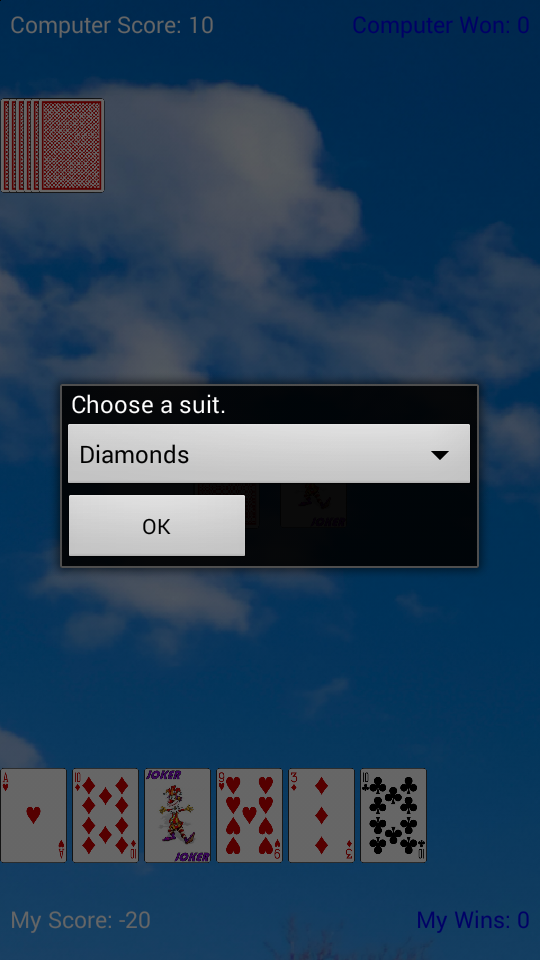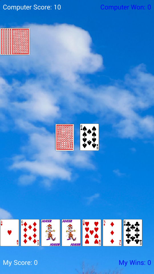 Discards game against the computer. Win the first to run out of cards or get 50 points.