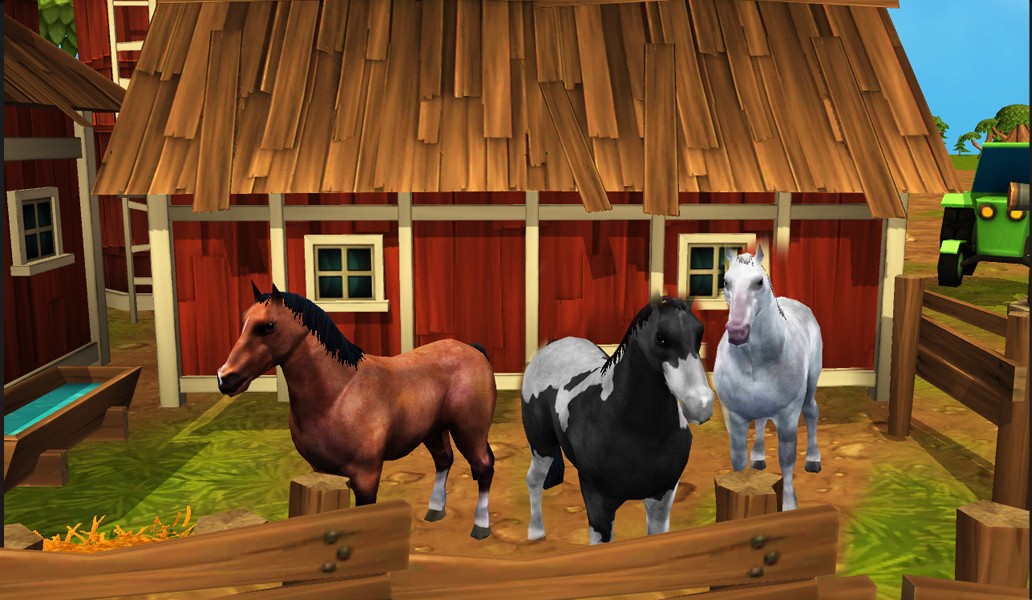 On the Farm, you get to smash into other horses, goat, sheep, chicken. Explore the miniature castle.