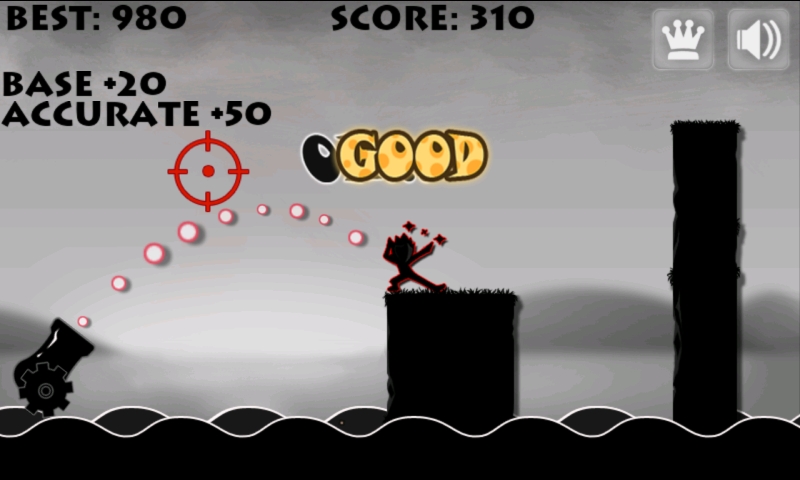 In this game you have to shoot our little jumping hero from the cannon and let him land on the platform on your way.