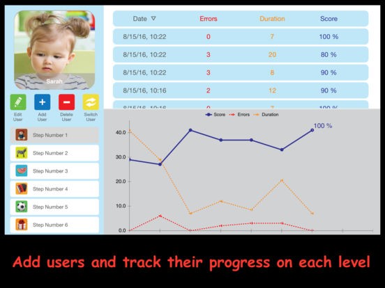For this reason, we added two important features: the first one was designed for teachers, therapists, and speech pathologists, which allows them to track the progress of their students; the second feature makes our apps also accessible for users with disabilities, and on this matter we would like to thank the Technology Consulting Center at “Beit Issie Shapiro”⁵ for their professional guidance and consultation regarding accessibility.