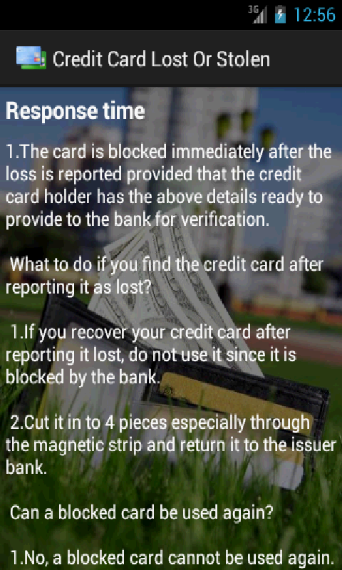 Credit Card Lost Tips This application provide you how to handle when Credit Card Lost or stolen. What action required and what protection we have to use.