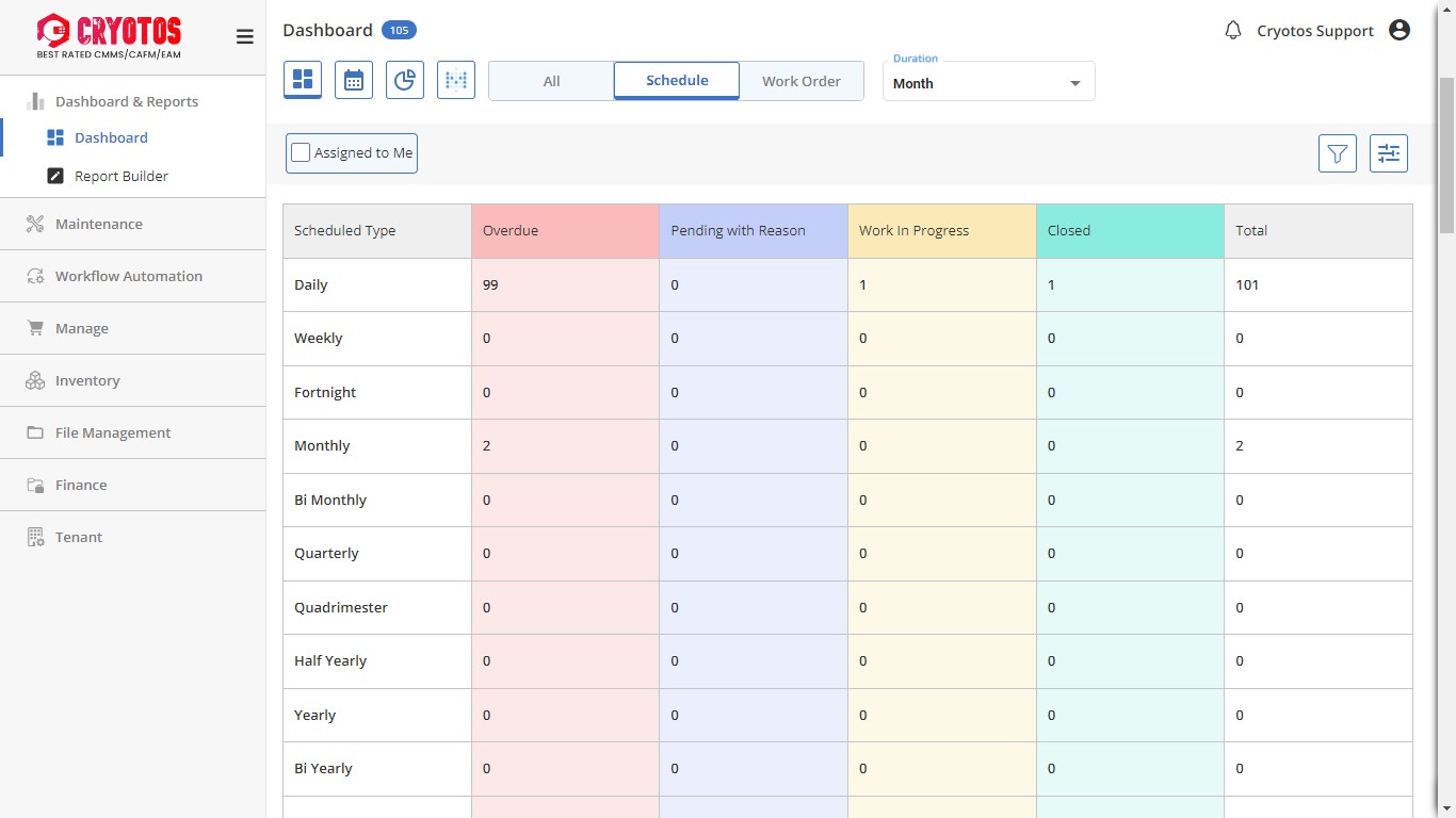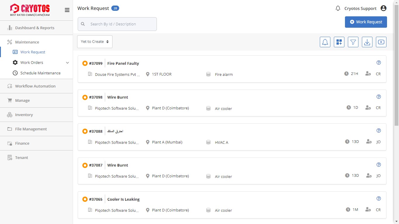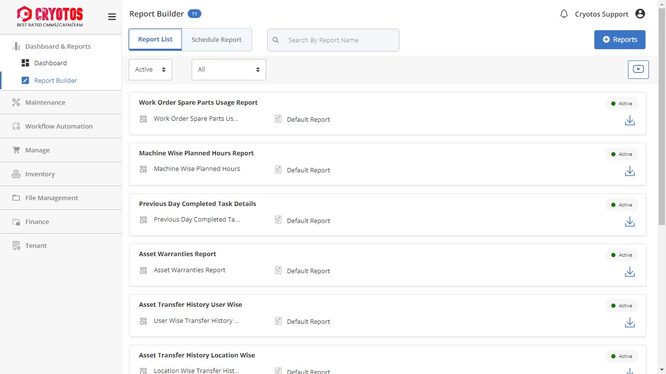 Cryotos CMMS is a comprehensive maintenance management software designed to streamline maintenance operations for businesses. It enables organizations to efficiently manage work orders, track assets, and schedule preventive maintenance, ensuring minimal downtime. With Cryotos, users can easily monitor and resolve maintenance requests, enhancing overall productivity and safety. The software's user-friendly interface and robust features make it an ideal solution for industries looking to optimize their maintenance processes.