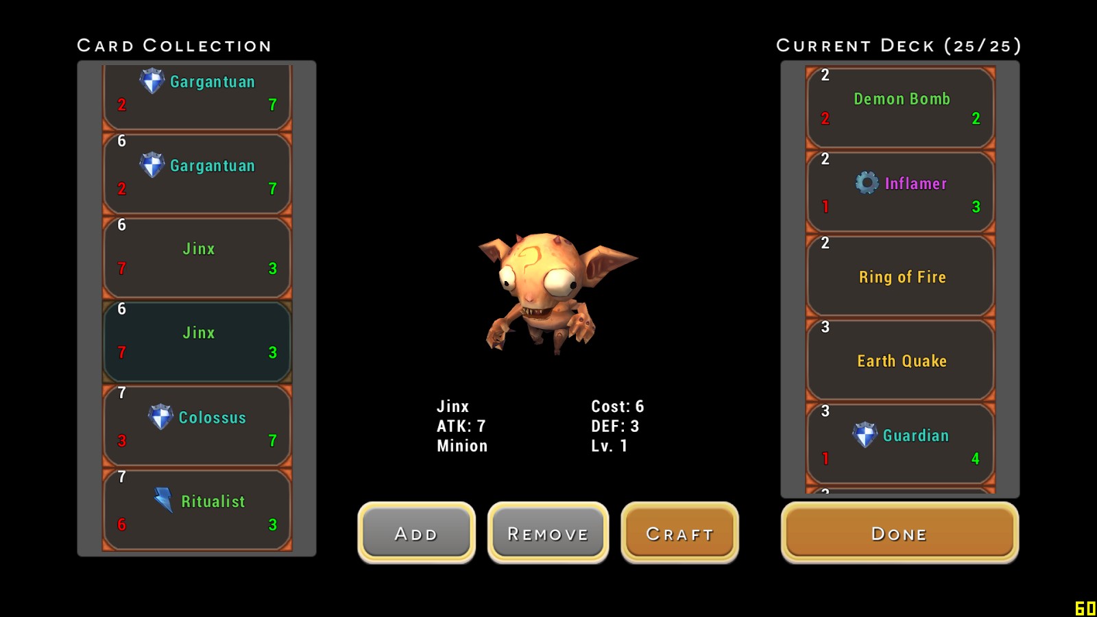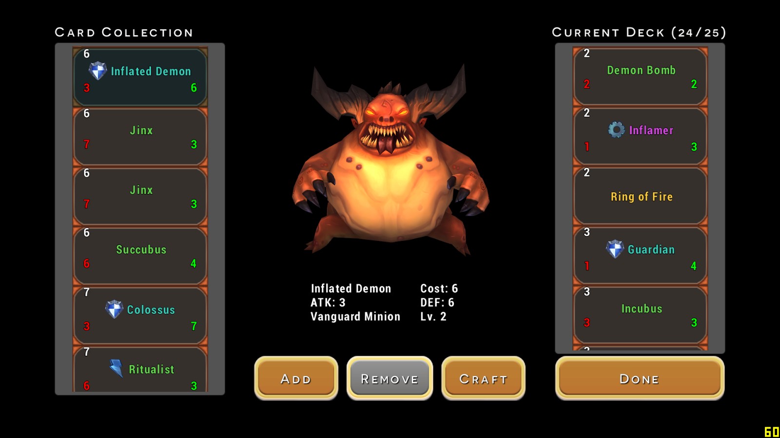 Select from three different minion masters, each with his own set of spells and minions. Build your deck from the large card collection and battle your friends and foes or the computer AI. Do you lack a card you want in your deck? Then there is an easy solution: craft a totally new card with the stats and attributes you want!